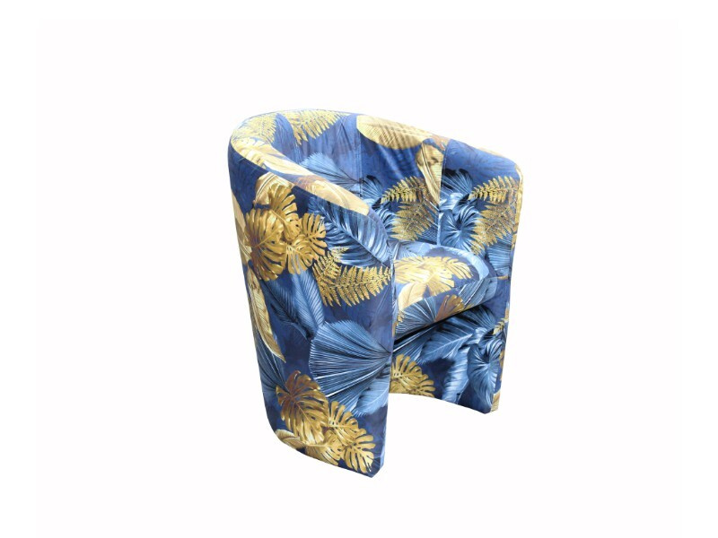 Vyrobeno je v krásné vzorované látce v odstínech modrá - žlutá (KA12613). Hlavním motivem na potahu jsou velké listy rostlin.