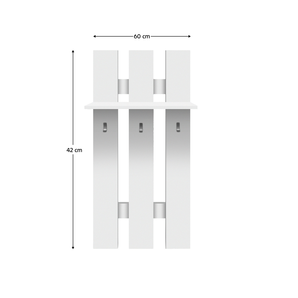 Věšák 60 TOPTY TYP 39 Materiál: DTD laminovaná Barva: bílá Rozměry (ŠxHxV): 60x23x100 cm Nosnost police: 3 kg Tři věšáky Police Dodáváno v demontu.