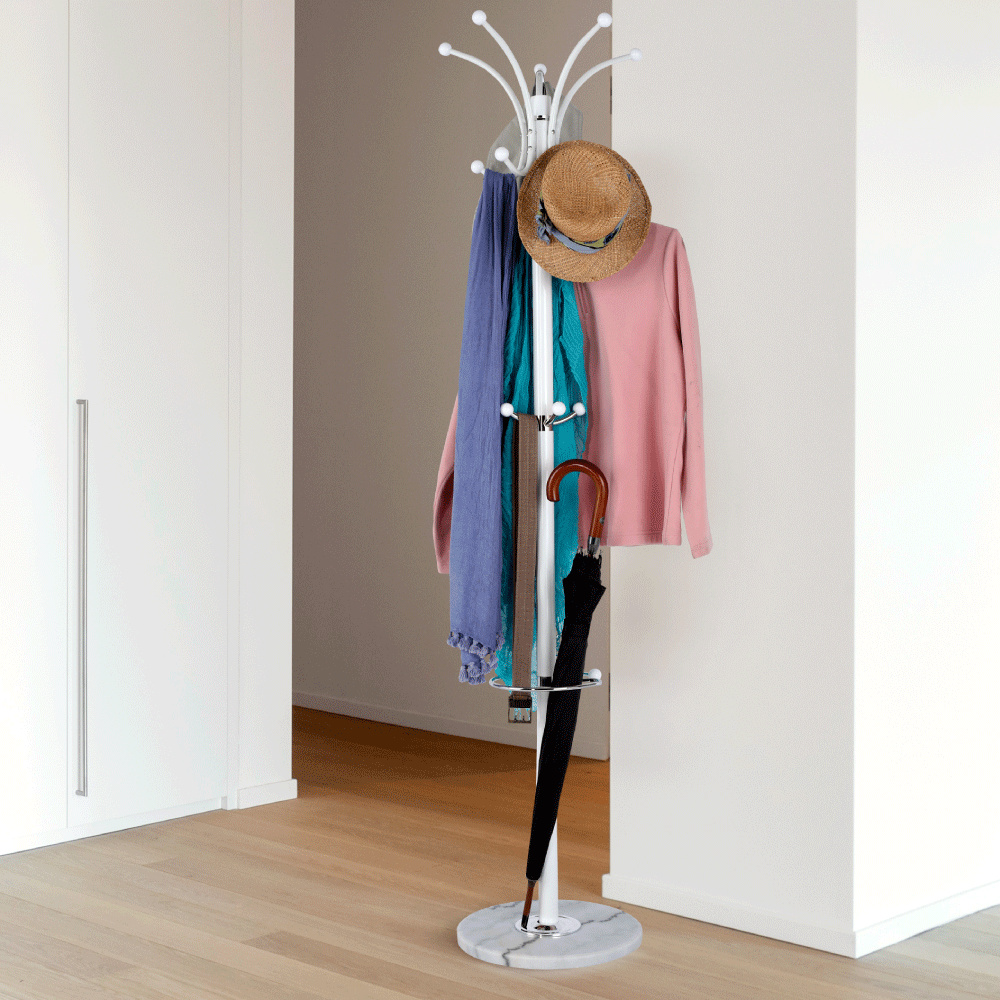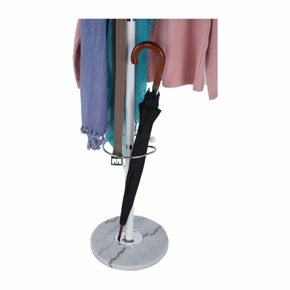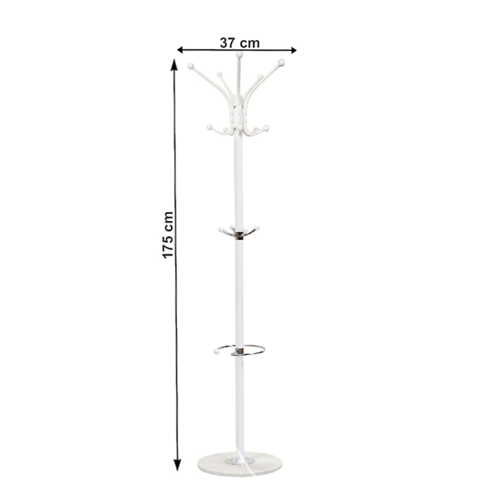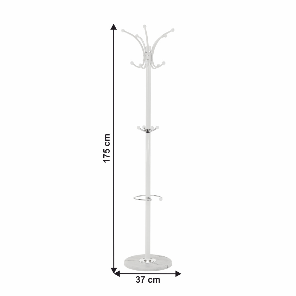 Materiál: kov Barva: bílá / mramor Rozměry (průměr xV): 37x175 cm mramorová podstava Dodávané v demontu Nosnost háčku: 3 kg Hmotnost: 8.68kg