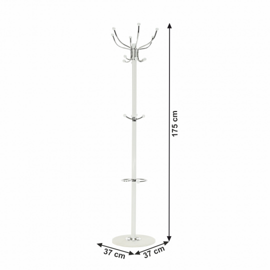 Materiál: kov / mramor Provedení: bílá Rozměry (ŠxHxV): 37x37x175 cm mramorová podstava Dodávané v demontu. Nosnost háčku: 2 kg Golyóscsapággyal Forgó