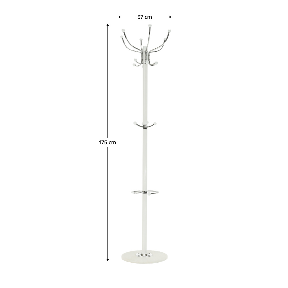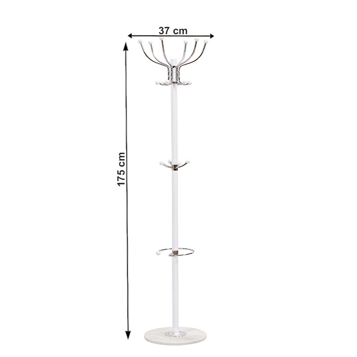 Materiál: kov Barva: bílá / mramor Rozměry (průměr xV): 37x175 cm mramorová podstava Dodávané v demontu Nosnost háčku: 3 kg Hmotnost: 8.68kg