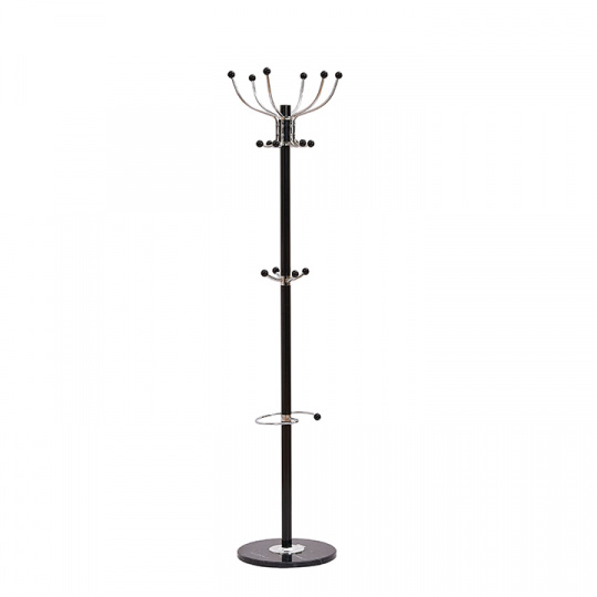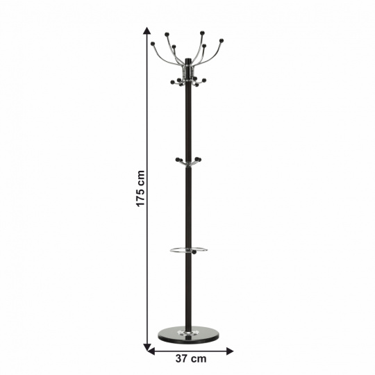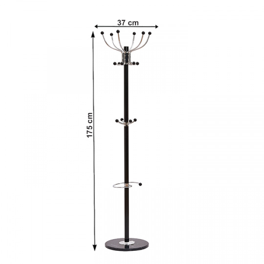 Materiál: kov / mramor Provedení: černá Rozměry (ŠxHxV): 37x37x175 cm mramorová podstava Dodávané v demontu. Nosnost háčku: 2 kg Golyóscsapággyal Forgó