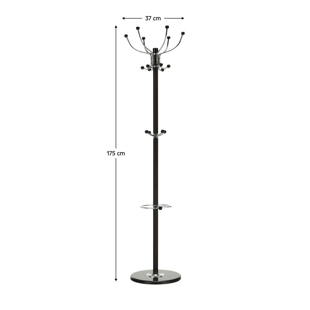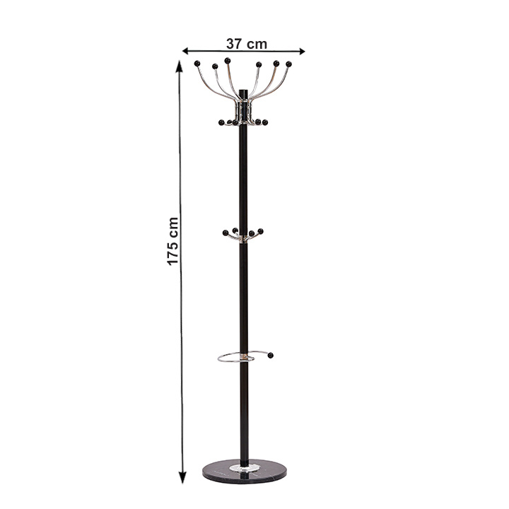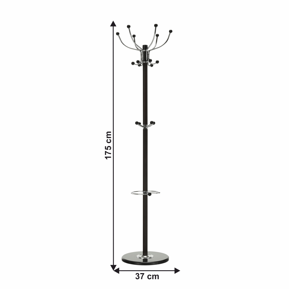 Materiál: kov / mramor Provedení: černá Rozměry (ŠxHxV): 37x37x175 cm mramorová podstava Dodávané v demontu. Nosnost háčku: 2 kg Golyóscsapággyal Forgó