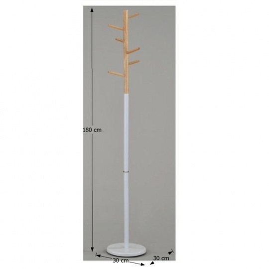 věšák Horst Materiál: kov / dřevo Provedení: bílá / přírodní Rozměry (ŠxHxV): 30x30x180 cm. Dodávané v demontu.