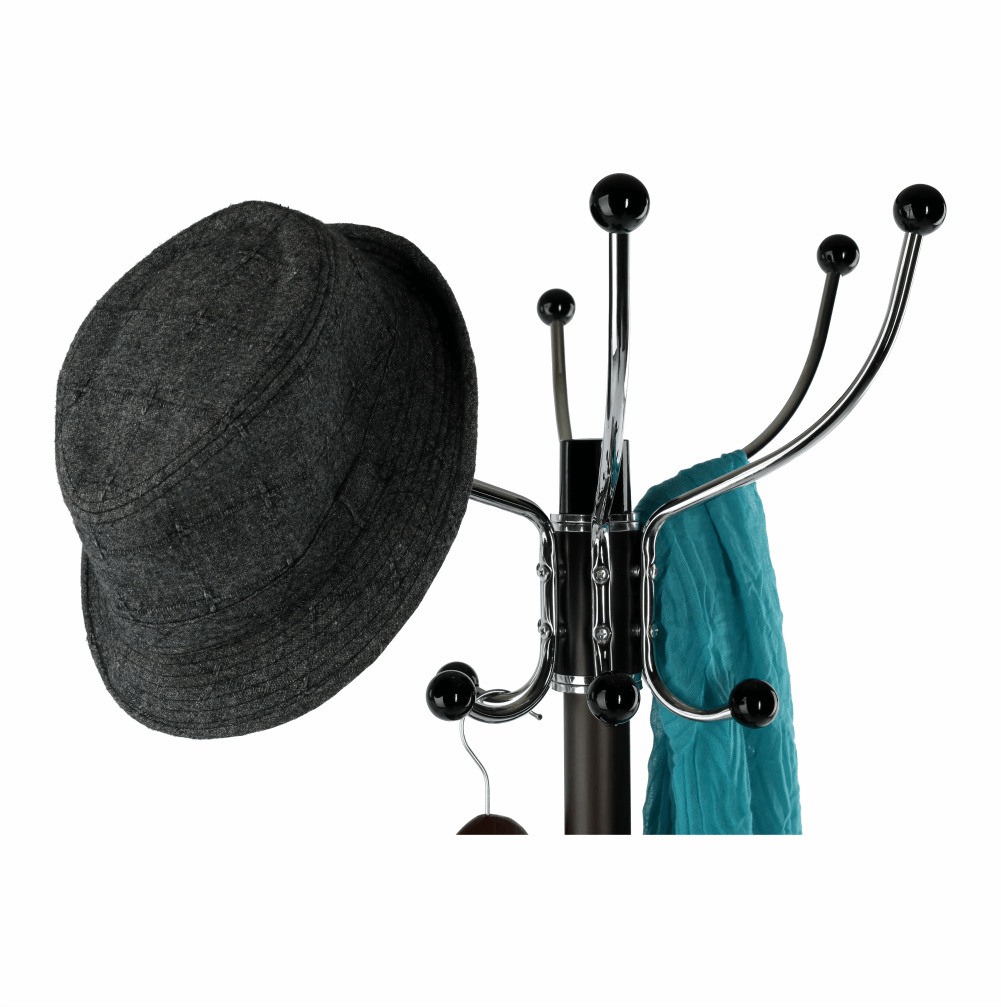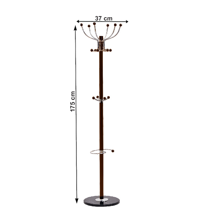 Materiál: kov / mramor Provedení: hnědá Rozměry (ŠxHxV): 37x37x175 cm mramorová podstava Dodávané v demontu. Nosnost háčku: 2 kg Golyóscsapággyal Forgó