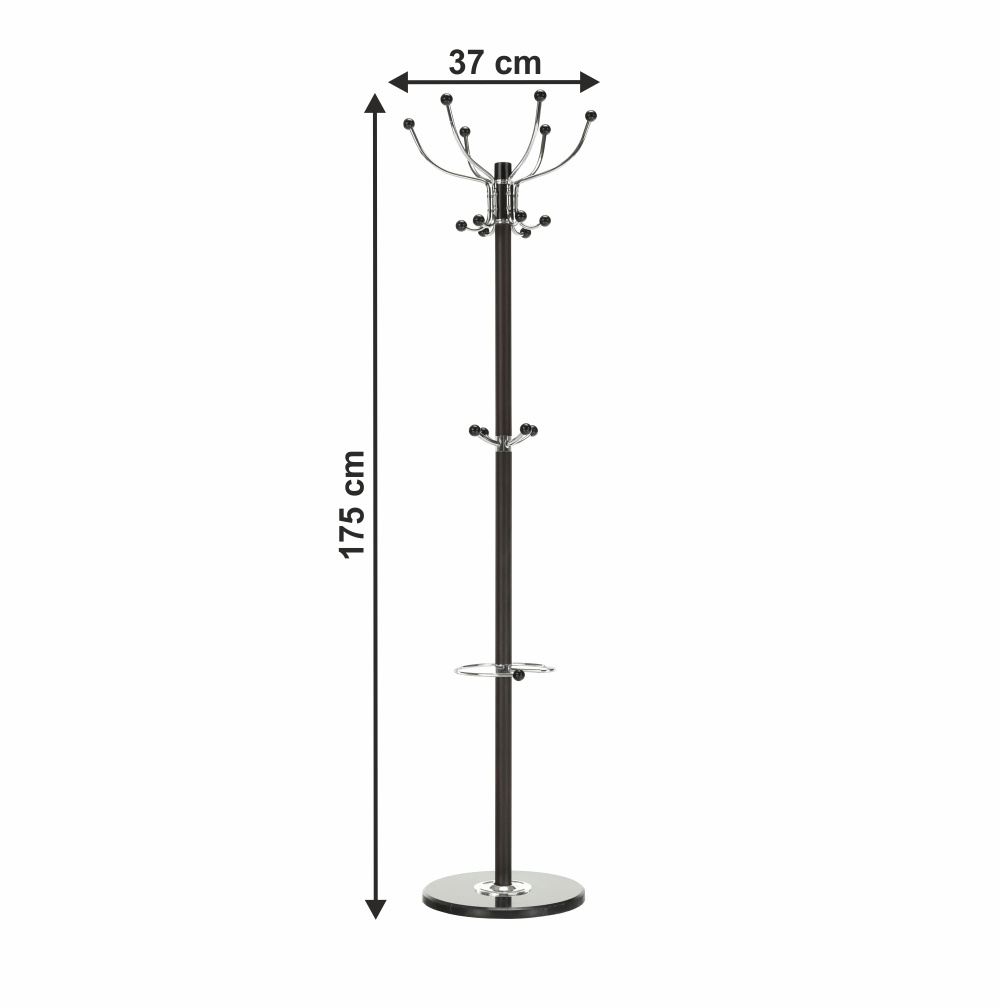 Materiál: kov Barva: černá / mramor Rozměry (průměr xV): 37x175 cm mramorová podstava Dodávané v demontu Nosnost háčku: 3 kg Hmotnost: 9.15kg