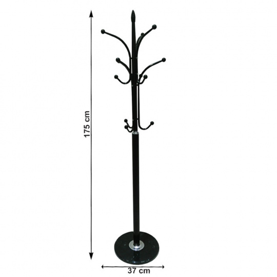 věšák Belvin Materiál: kov / mramor, Provedení: černá Rozměry: ŠxHxV: 37x37x175 cm Nosnost: 4 kg Dodávané v demontu.