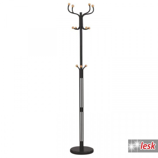 Věšák VASIL Barva: černý lesk / přírodní dřevo Materiál: kov / dřevo Rozměry (ŠxHxV): 30x30x198 cm