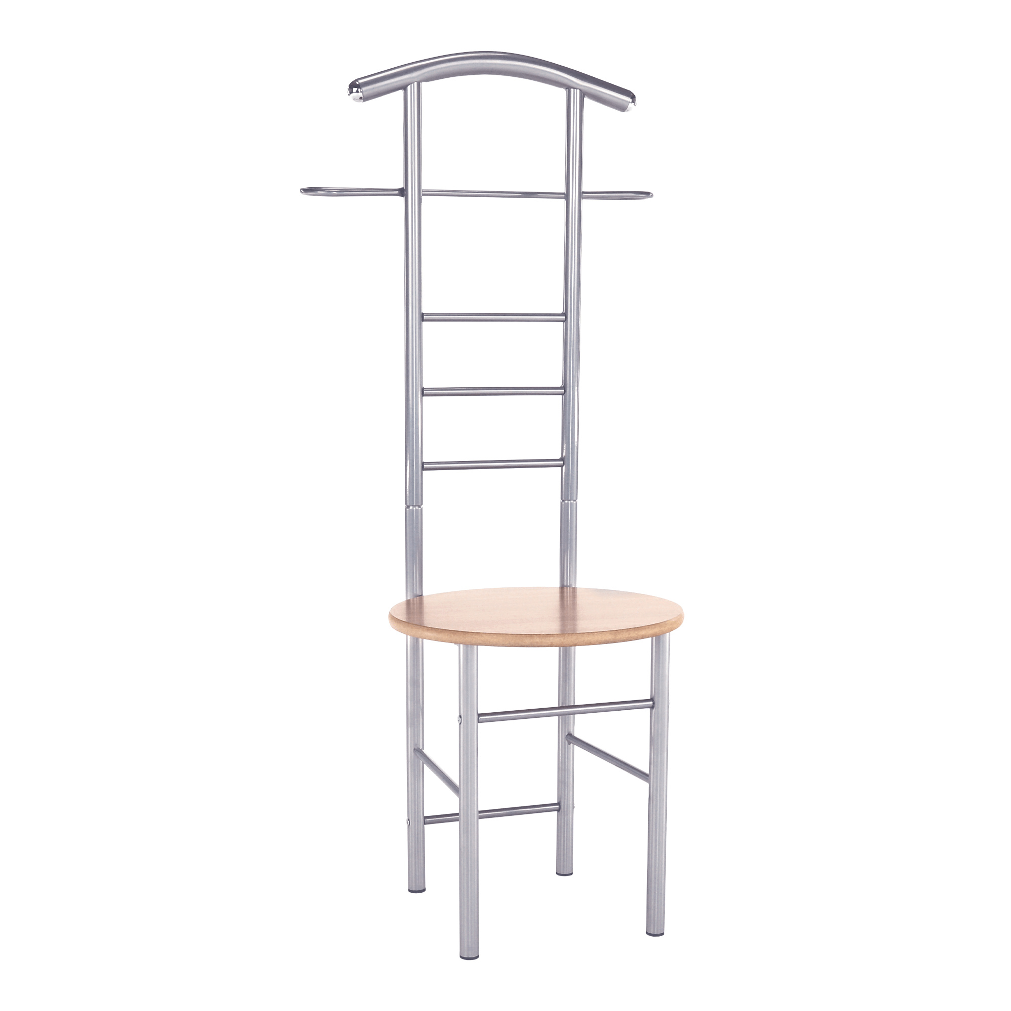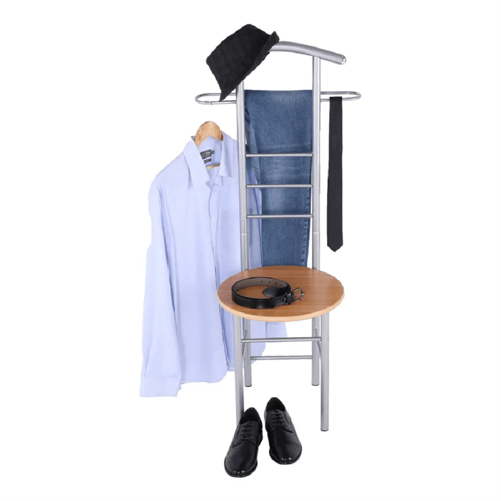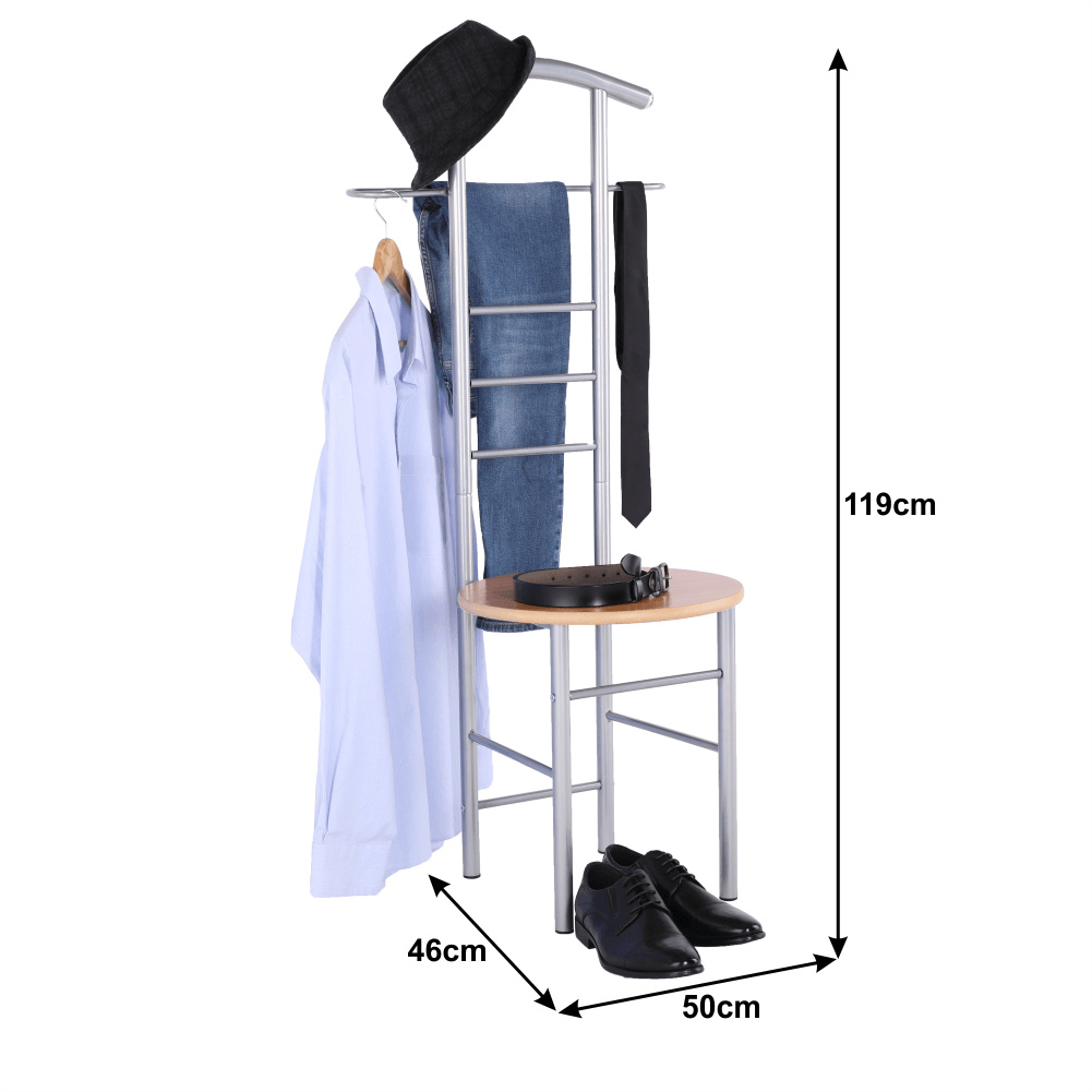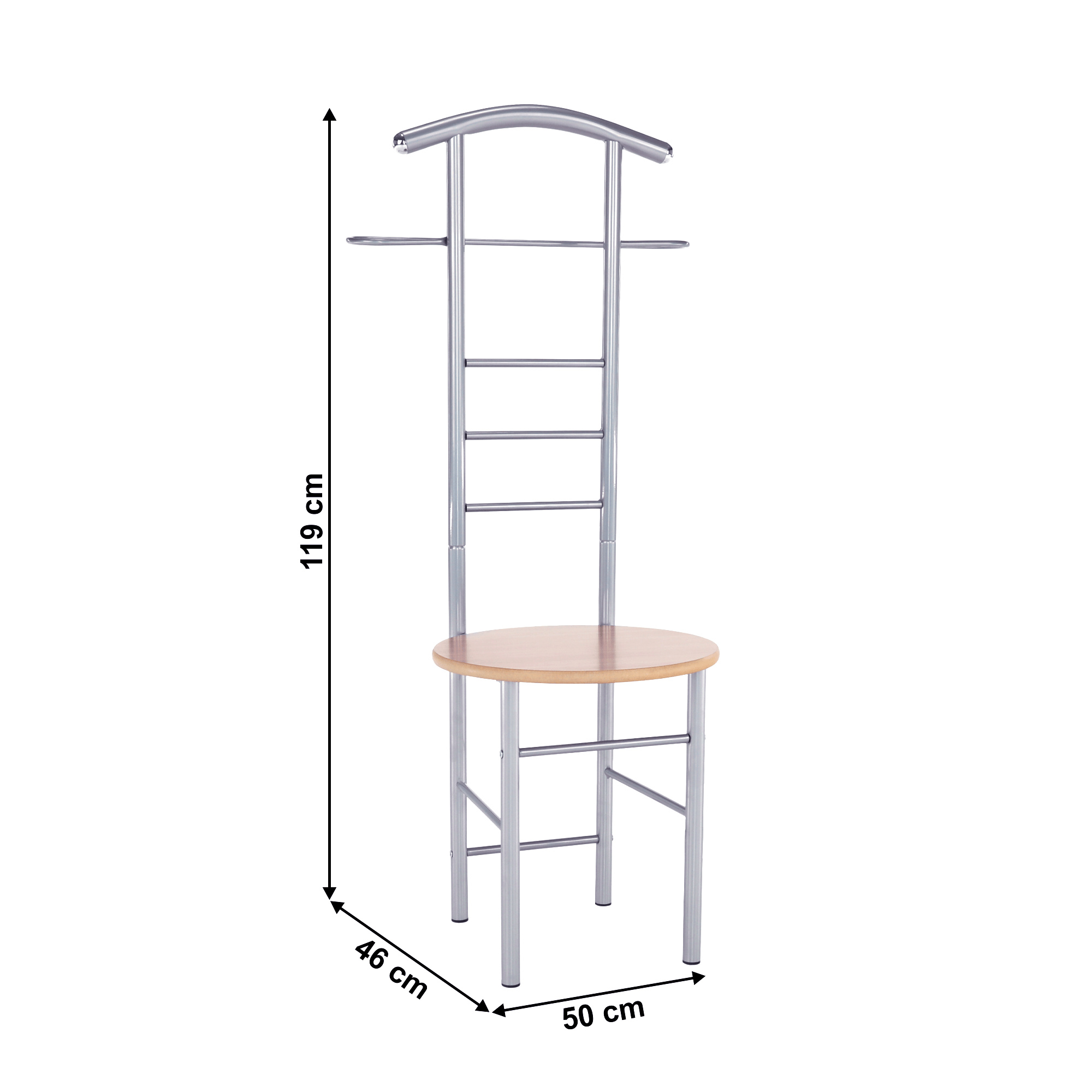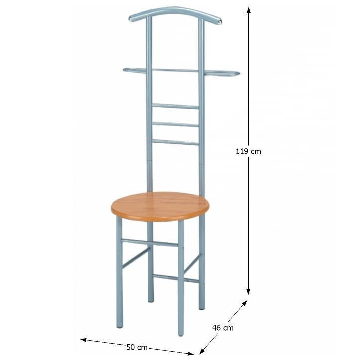Věšák-sluha se židlí Frank Materiál: kov / MDF foliovaná, Provedení: buk / stříbrná Rozměry: ŠxHxV: 50x46x119 cm. Dodávané v demontu.