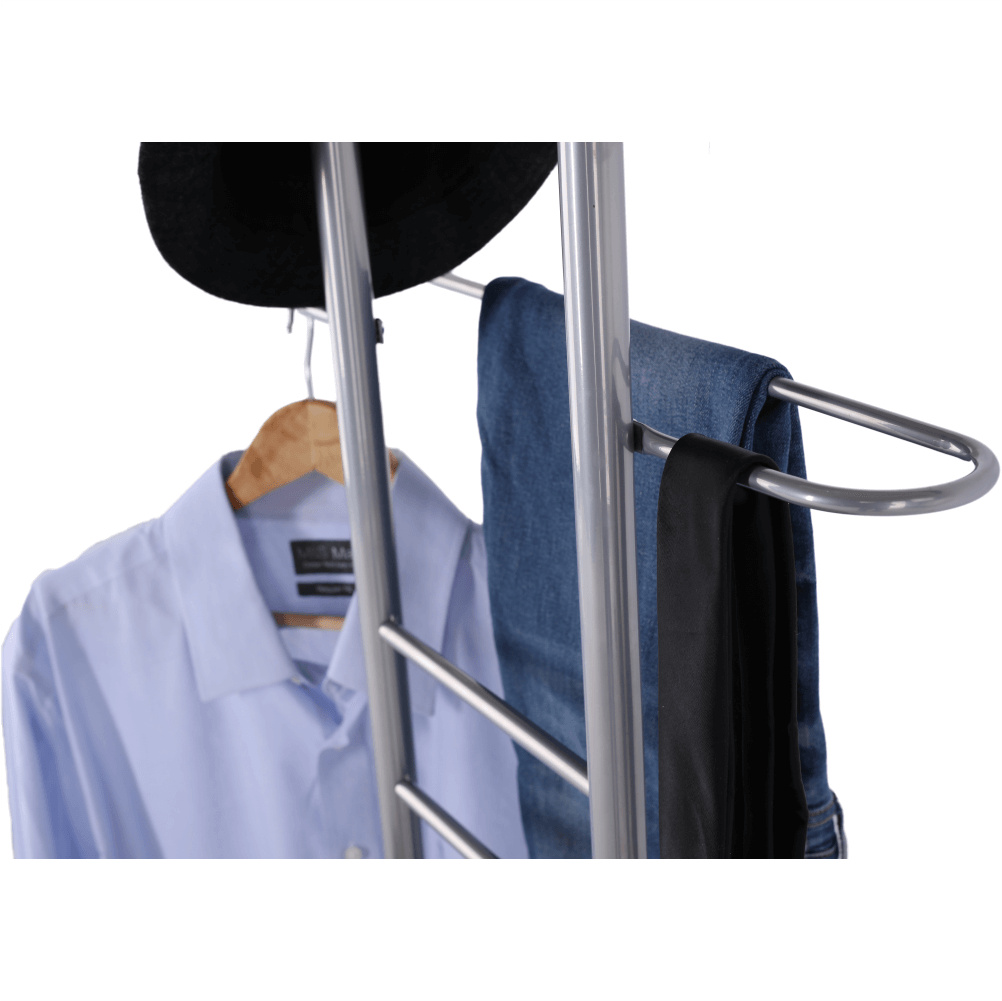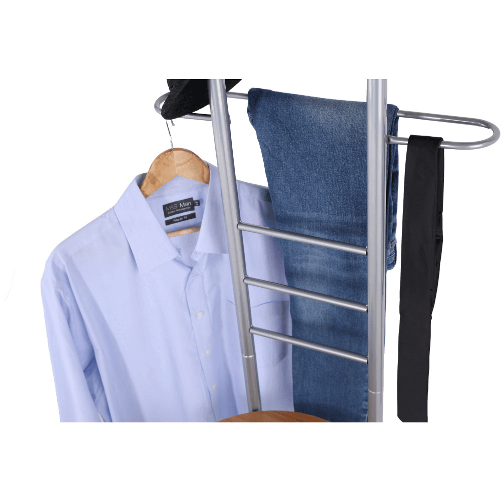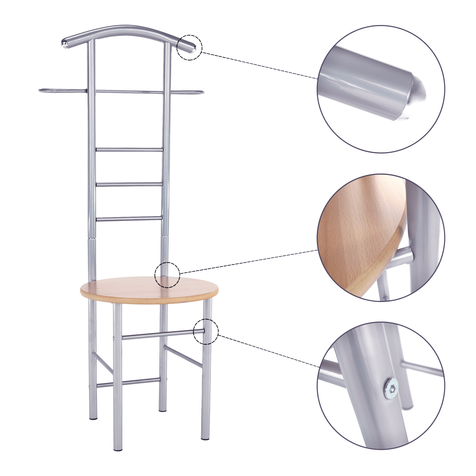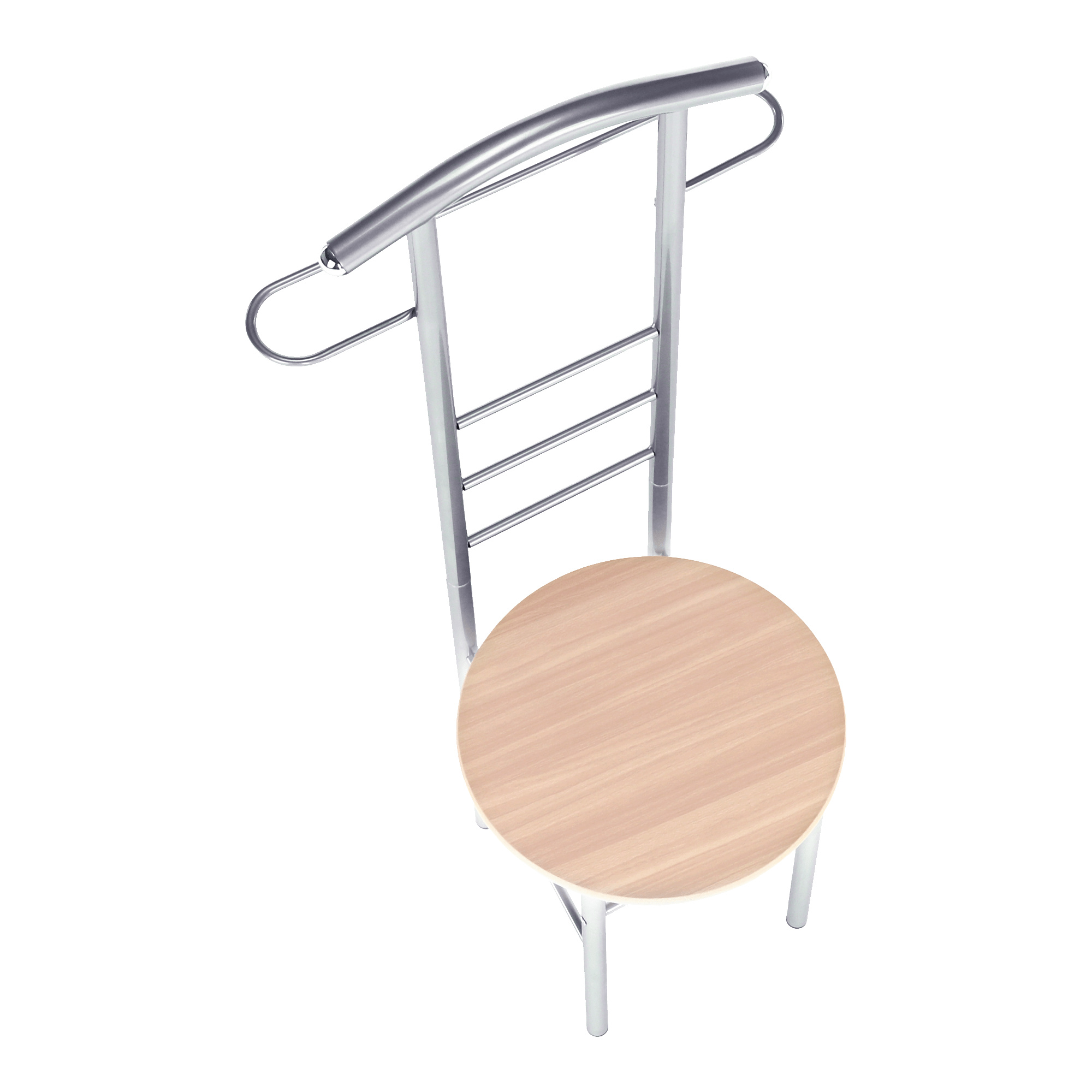 Věšák-sluha se židlí Frank Materiál: kov / MDF foliovaná, Provedení: buk / stříbrná Rozměry: ŠxHxV: 50x46x119 cm. Dodávané v demontu.