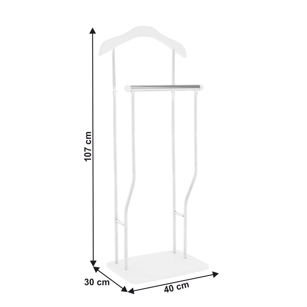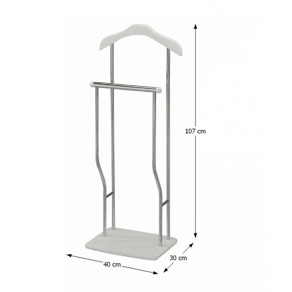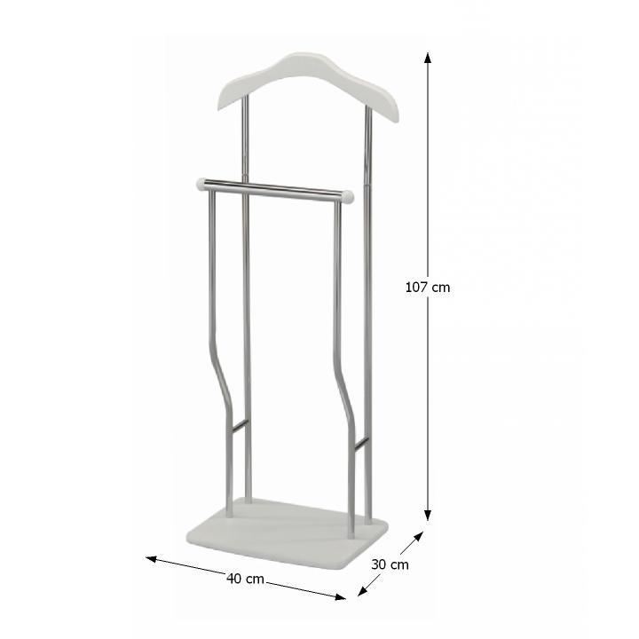 Věšák-sluha Materiál: kov / dřevo Provedení: chrom / bílá Rozměry: ŠxHxV: 40x30x107 cm. Dodávané v demontu.