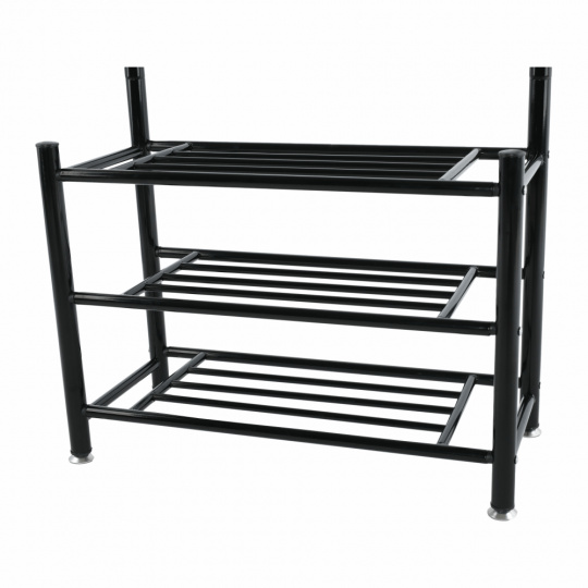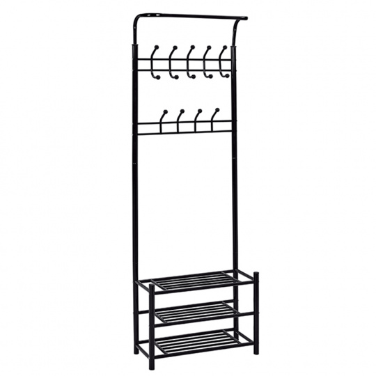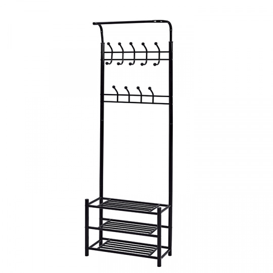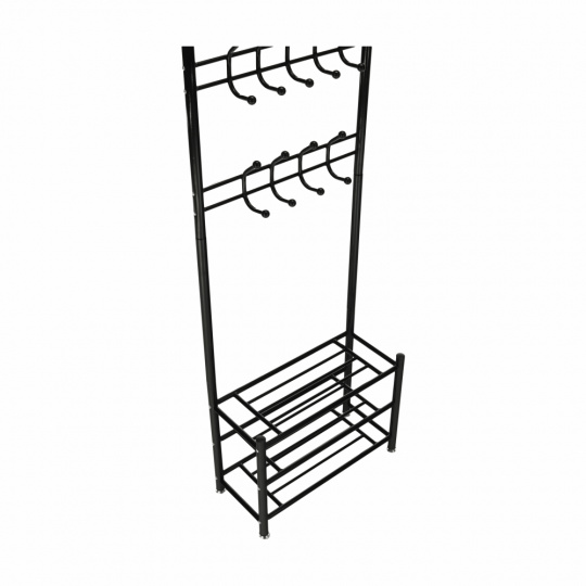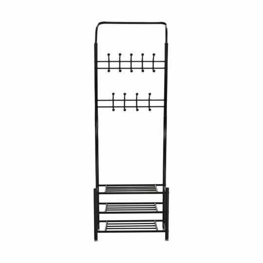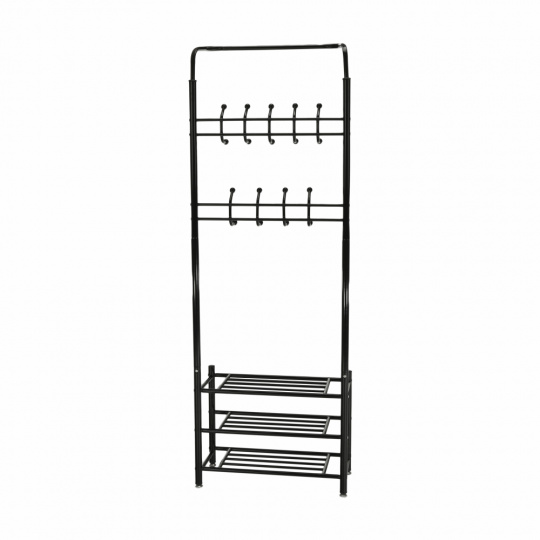 Materiál: kov Barva: černá Rozměry (ŠxHxV): 66x30x190 cm S háčky kovové police Dodávané v demontu