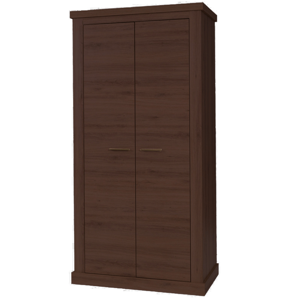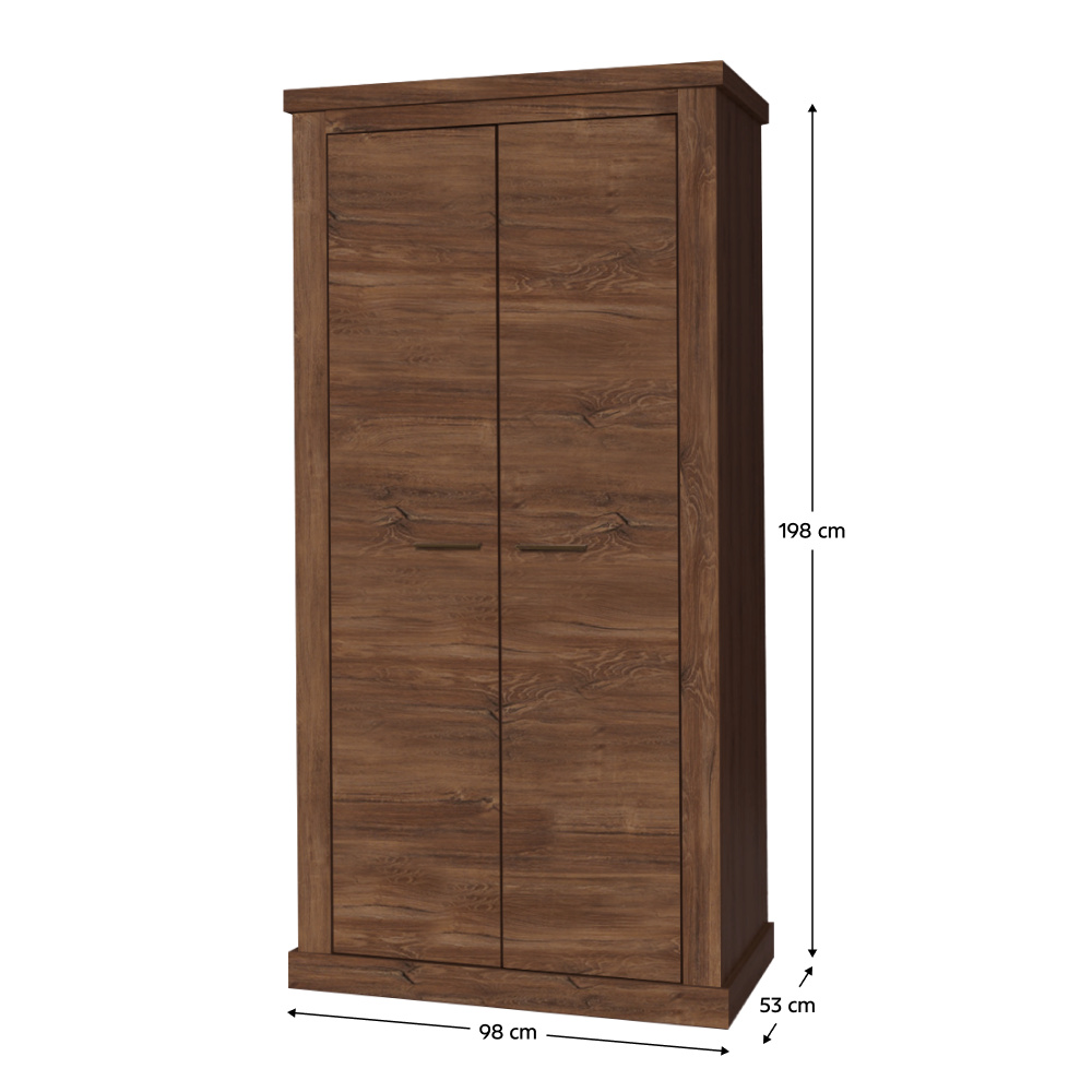 Materiál: DTD laminovaná / ABS hrany Barva: dub stirling Rozměry (ŠxHxV): 98x53x198 cm Tloušťka materiálu: 50 mm 3D efekt kovové úchytky ABS hrany věšáková tyč police Dodávané v demontu