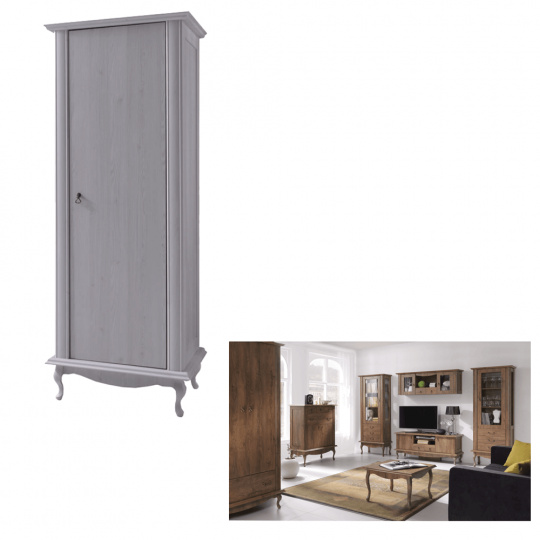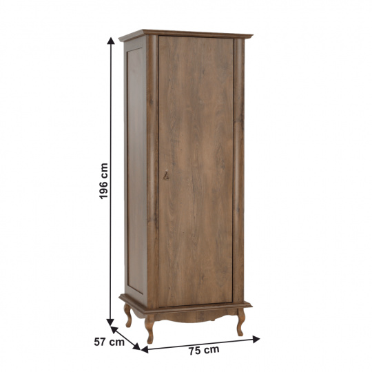 Materiál: DTD laminovaná / ABS hrany Barva: dub lefkas Rozměry (ŠxHxV): 75x57x196 cm Výška spodního prostoru od podlahy: 15 cm Tloušťka materiálu: 30 mm 3D efekt kovové úchytky Dřevěné nožičky ABS hrany barokní styl