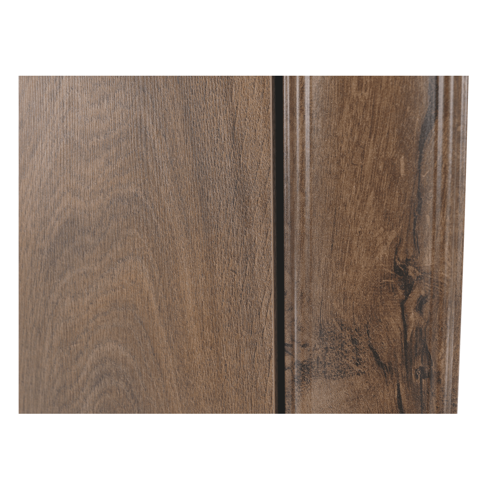 Materiál: DTD laminovaná / ABS hrany Barva: dub lefkas Rozměry (ŠxHxV): 75x57x196 cm Výška spodního prostoru od podlahy: 15 cm Tloušťka materiálu: 30 mm 3D efekt kovové úchytky Dřevěné nožičky ABS hrany barokní styl