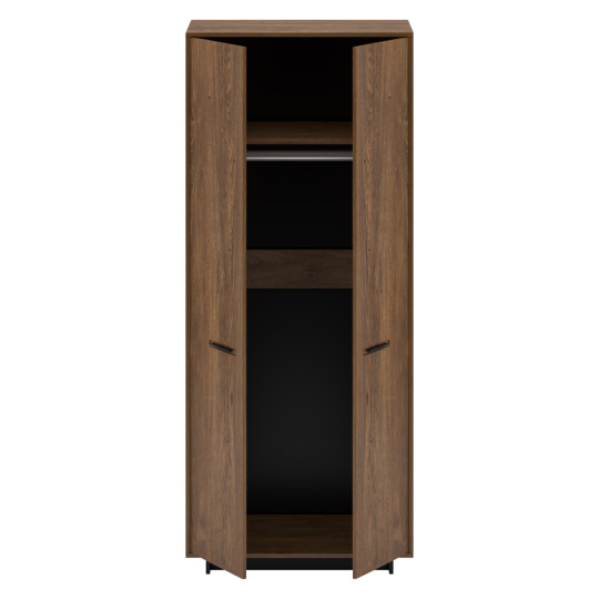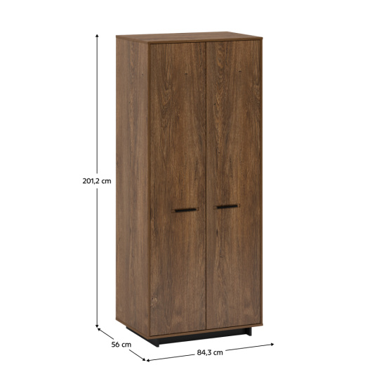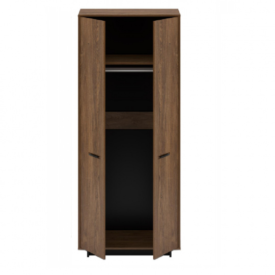 Materiál: DTD laminovaná / MDF fóliovaná Barva: dub bolzano / černá Rozměry (ŠxHxV): 84,3x56x201,2 cm Tloušťka materiálu: 16 mm věšáková tyč 1 police na podstavci Výška spodního prostoru od podlahy: 5 cm kovové úchytky originální design Krásná kresba dřeva Do tradičního i moderního interiéru Do obývacího pokoje, pracovny i studentského pokoje Dodávána v demontu