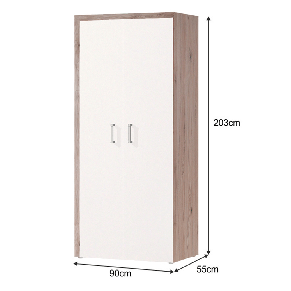 Materiál: DTD laminovaná Barva: san marino / cream Rozměry (ŠxHxV): 90x55x203 cm Tloušťka materiálu: 16 mm 2-dveřová Police Věšáková tyč Dodávané v demontu