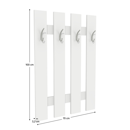 Věšák KORADO NEW Barevné provedení: bílá Materiál: DTD laminovaná Rozměry (ŠxHxV): 70x3,2x100 cm Tloušťka materiálu: 16 mm Dodávané v demontu