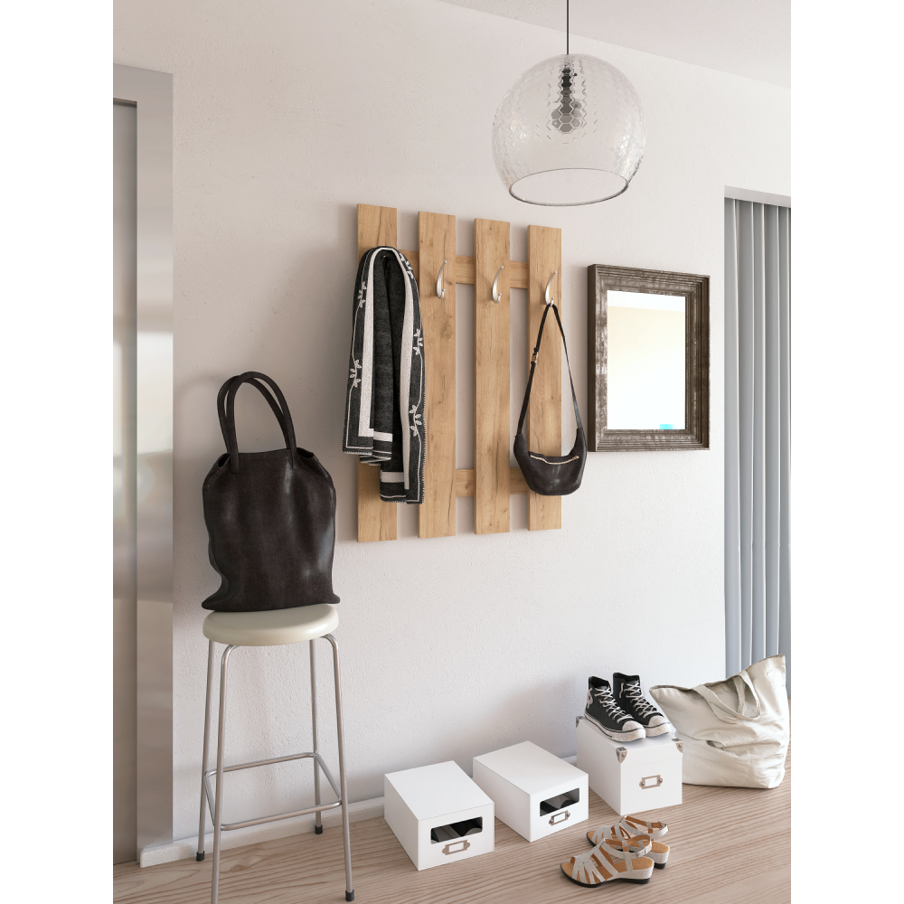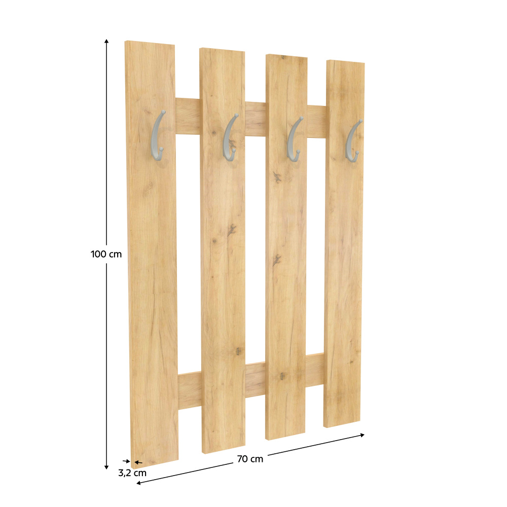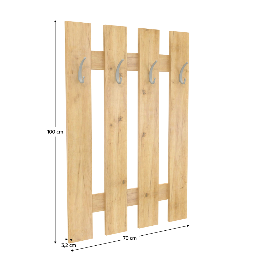 Věšák KORADO NEW Barevné provedení: dub artisan Materiál: DTD laminovaná Rozměry (ŠxHxV): 70x3,2x100 cm Tloušťka materiálu: 16 mm Dodávané v demontu