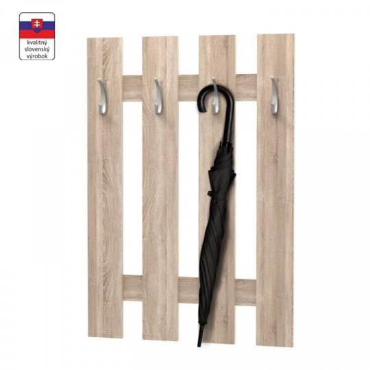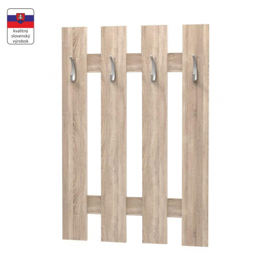 Věšák KORADO NEW Barevné provedení: dub sonoma Materiál: DTD laminovaná Rozměry (ŠxHxV): 70x3,2x100 cm Tloušťka materiálu: 16 mm Dodávané v demontu