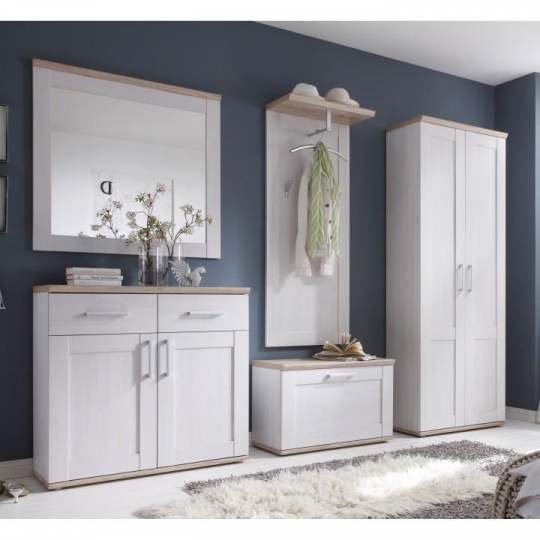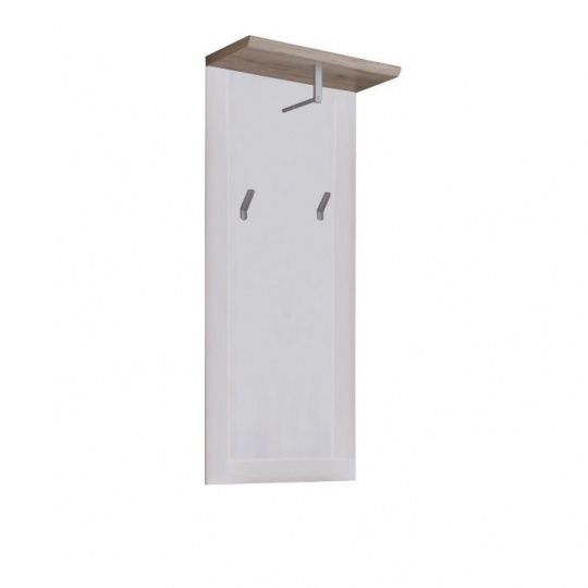 Věšákový panel z předsíňové sektorové sestavy ProVens. Bílý korpus, vrchní a spodní plát dub San Remo DTD fóliovaná Rozměry (ŠxHxV): 59x30x143 cm. Dodávané v demontu.
