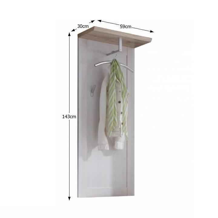 Věšákový panel z předsíňové sektorové sestavy ProVens. Bílý korpus, vrchní a spodní plát dub San Remo DTD fóliovaná Rozměry (ŠxHxV): 59x30x143 cm. Dodávané v demontu.