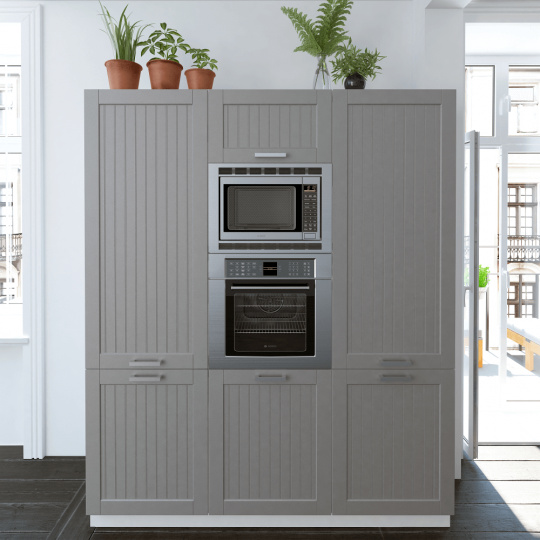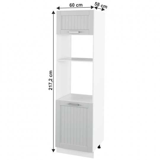 Materiál skříňka: DTD laminovaná / MDF fóliovaná Barva skříňka: světlešedá / bílá Materiál úchytky: kov Barva úchytky: matný chrom Rozměry (ŠxHxV): 60x58x217,2 cm Vnitřní rozměr na trubku (ŠxHxV): 56,8x56,5x59 cm Vnitřní rozměr na mikrovlnku (ŠxHxV): 56,8x56,5x38 cm Tloušťka materiálu: 16 mm S dvířky S nožičkami S kovovými úchyty Kvalitní slovenský výrobek Dodávané v demontu Cena sektorových skříněk je včetně soklů, bez pracovní desky. Cena za pracovní desku je 1.290,-Kč za bm - tloušťka 38 mm.