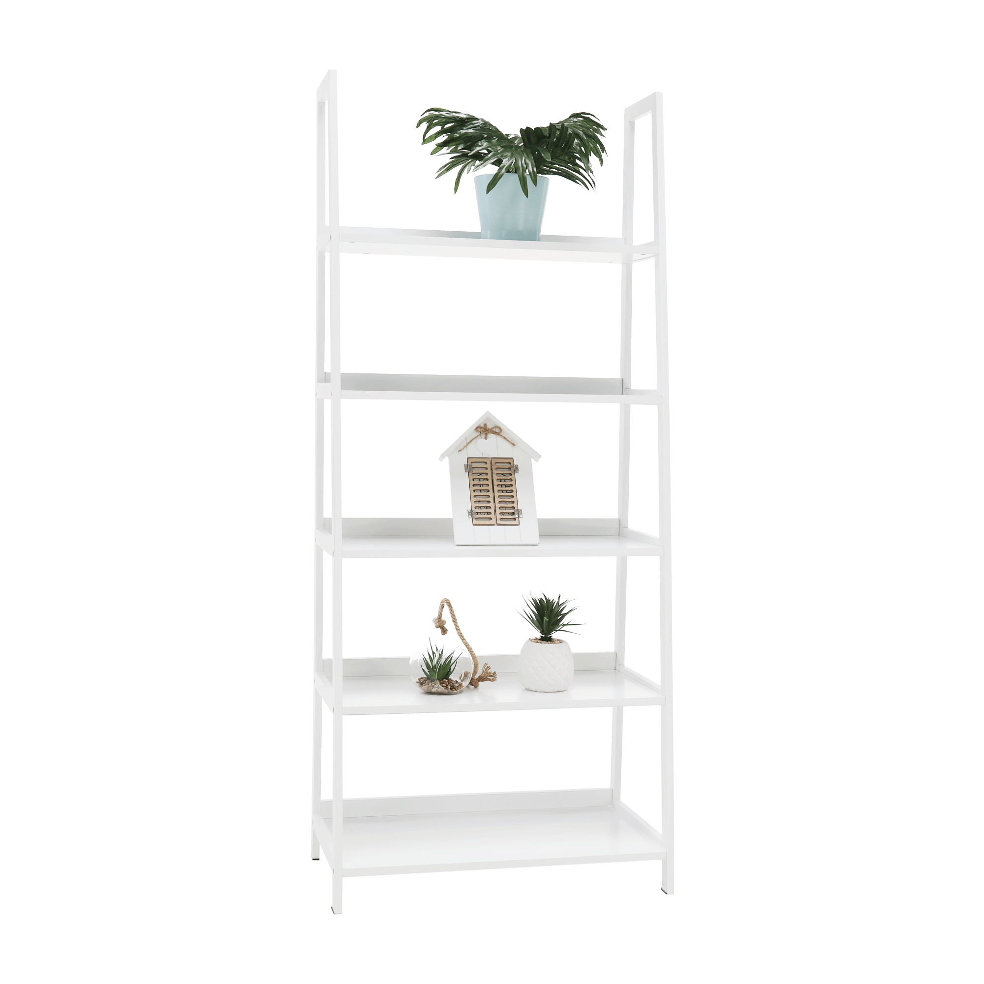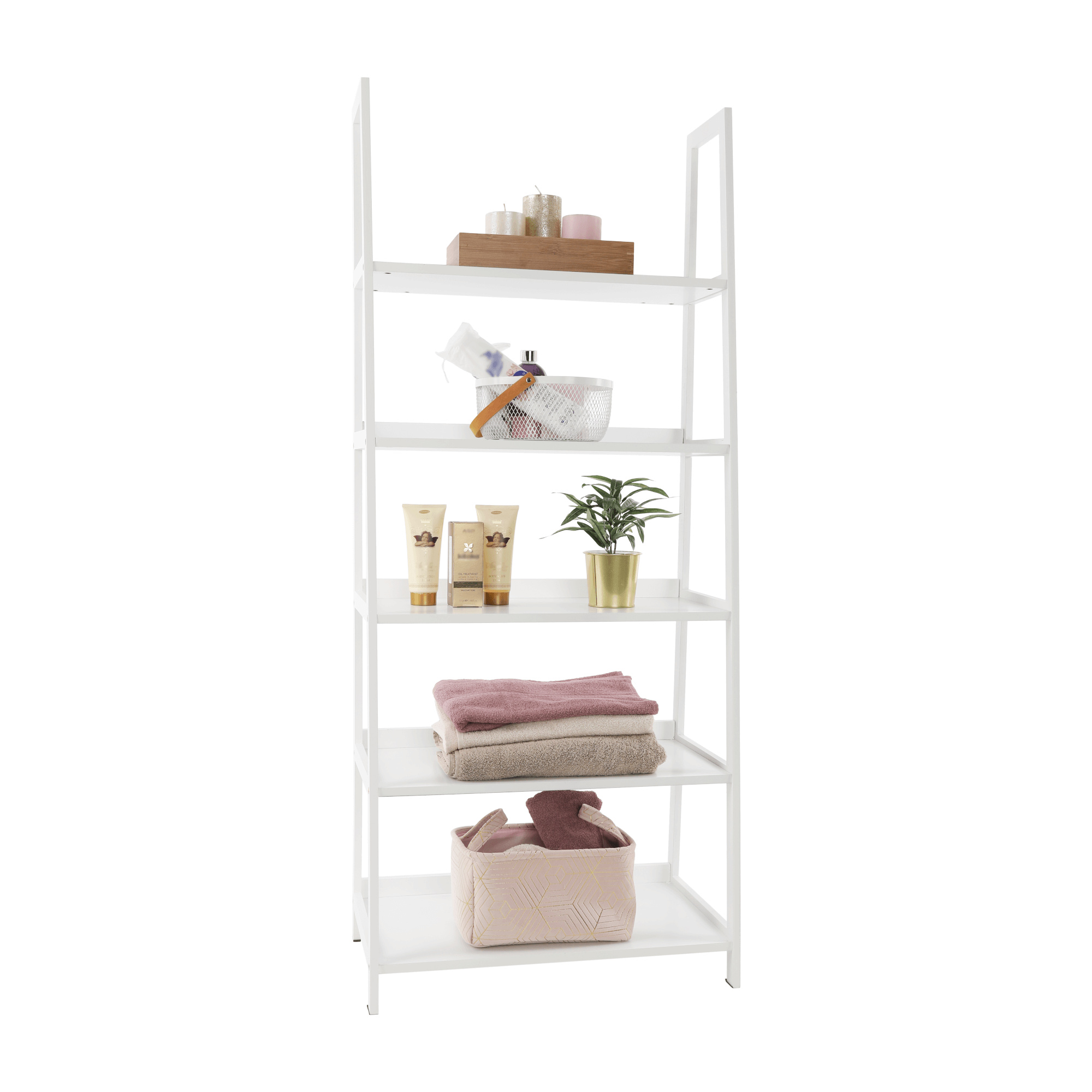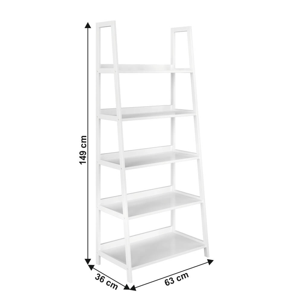 Víceúčelový regál Reon TYP 3 Materiál: MDF / bambus lakovaný Barva: bílá Rozměry (ŠxHxV): 63x63x149 cm Tloušťka materiálu stojan: 1,4 cm Tloušťka materiálu police: 1,6 cm Nosnost na jednu polici: 5 kg 5 polic Hloubka vrchní police: 21,2 cm Hloubka 2. police: 24,3 cm Hloubka 3. police: 27,3 cm Hloubka 4. police: 30,4 cm Hloubka spodní police: 33,3 cm Prostor mezi vrchní a 2. policí: 26,4 cm Prostor mezi 2. a 3. policí: 26,9 cm Prostor mezi 3. a 4. policí: 26,2 cm Prostor mezi 4. a spodní policí: 26,8 cm moderní design praktický Dodávané v demontu.