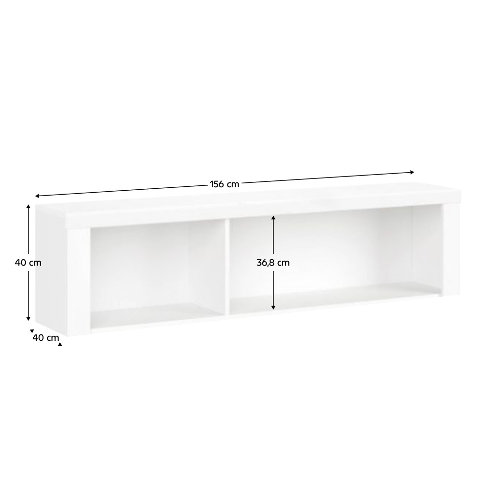 Materiál: laminovaná DTD Barva: bílý lesk Rozměry (ŠxHxV): 156x40x40 cm Tloušťka materiálu: 1,6 cm ABS hrany Moderní design Otevřený úložný prostor Doporučujeme připevnit ke zdi Jen na objednávku Dodací lhůta je 3-5 týdnů Dodáváno v demontu