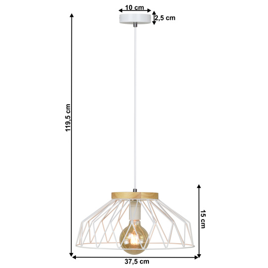 Materiál: kov/dřevo Barva: bílá/přírodní Celkové rozměry (ŠxHxV): 37,5x37,5x119,5 cm Rozměry podstavce (ŠxHxV): 10x10x2,5 cm Rozměry stínítka: (ŠxHxV): 37,5x37,5x15 cm Dodávána bez žárovky Visací Doporučený typ žárovky (závit): E27 Maximální příkon žárovky: 40 W Napětí: 220-240 V Délka kabelu: 1 m Dodáváno v demontu