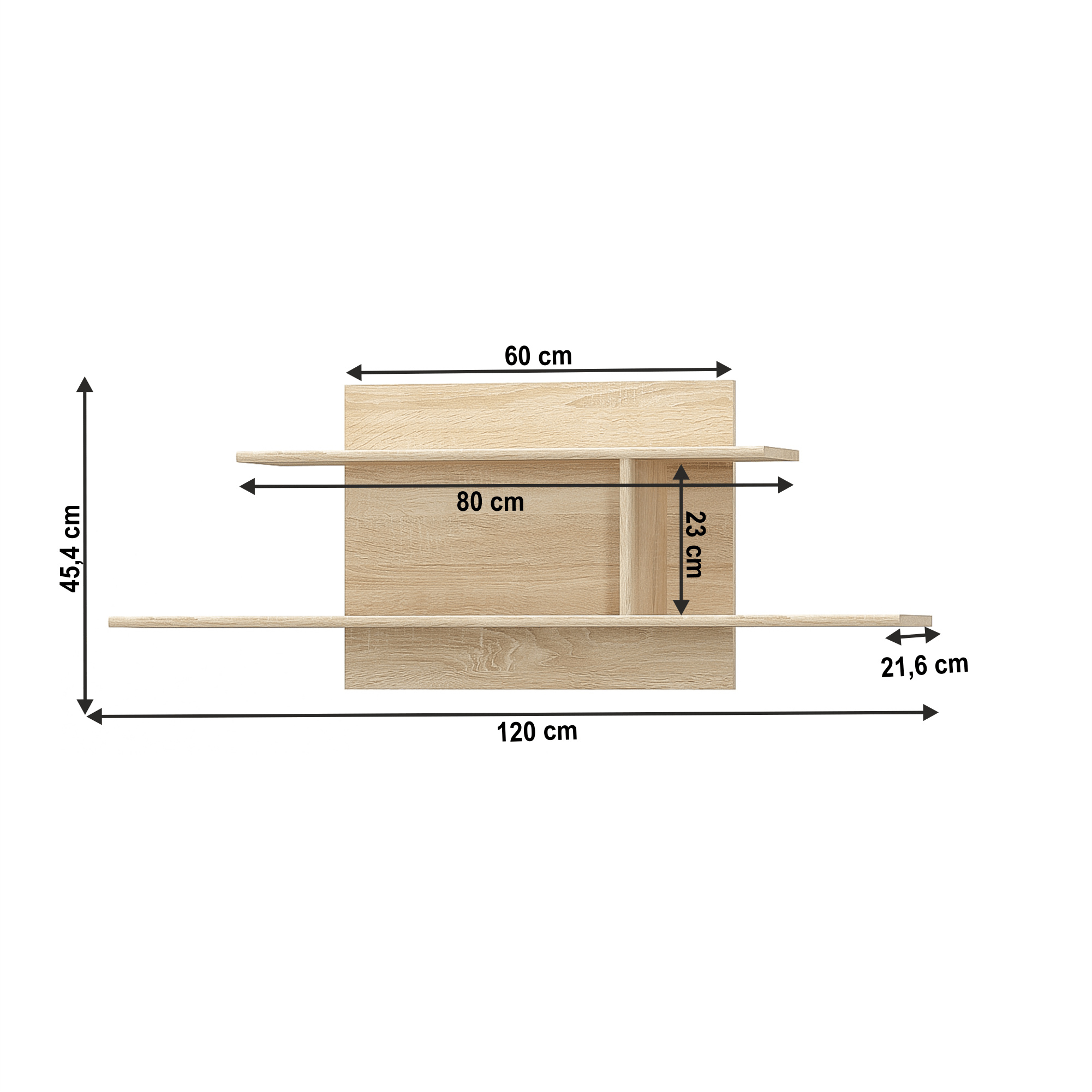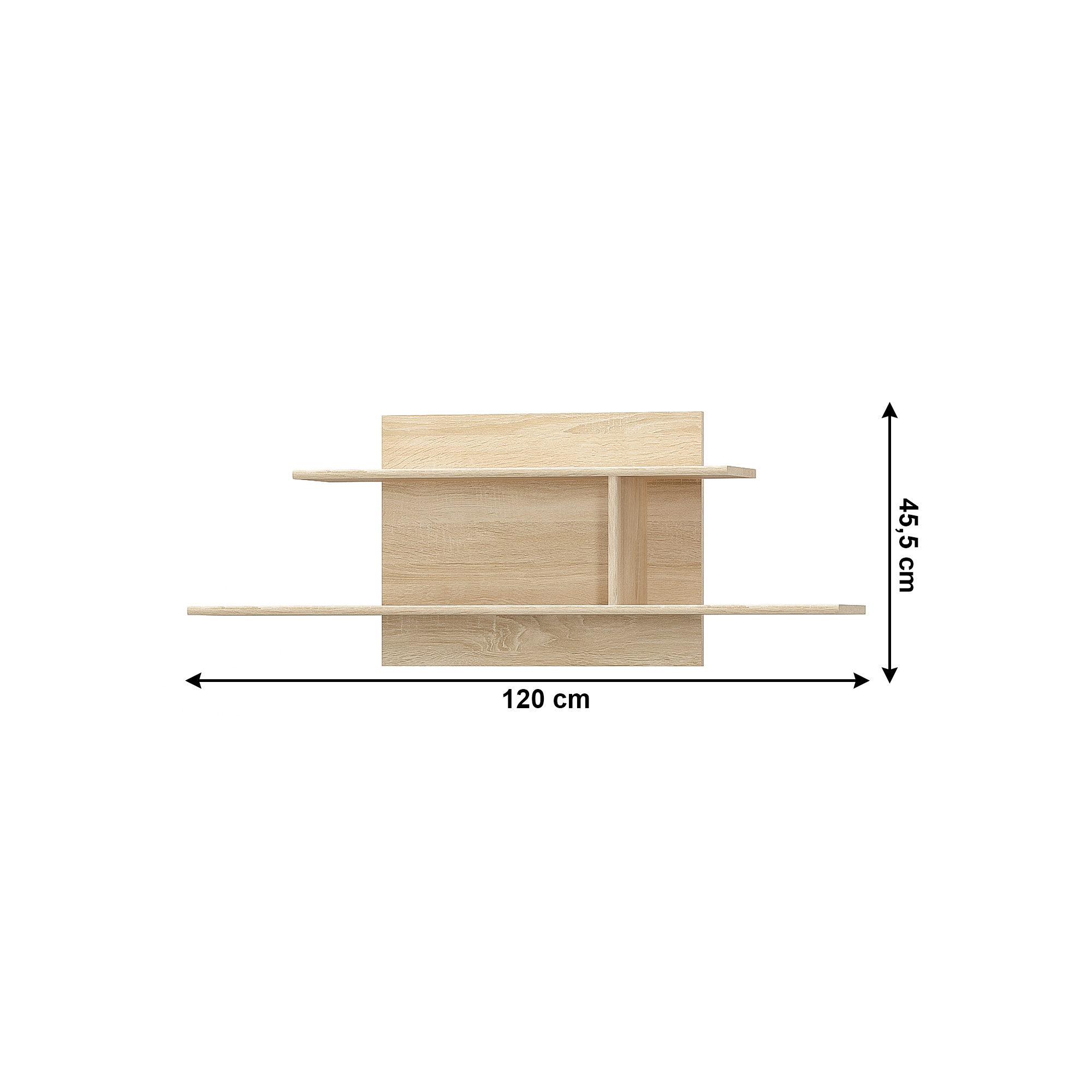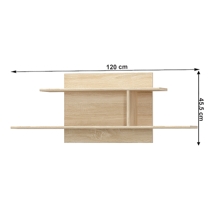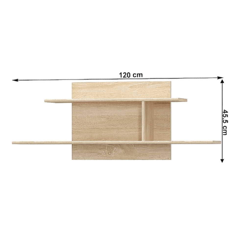 Visící police 120 TEYO Materiál: DTD laminovaná Barva: dub sonoma Rozměry (ŠxHxV): 120x21,6x45,4 cm Tloušťka materiálu: 16 mm Dodávané v demontu.