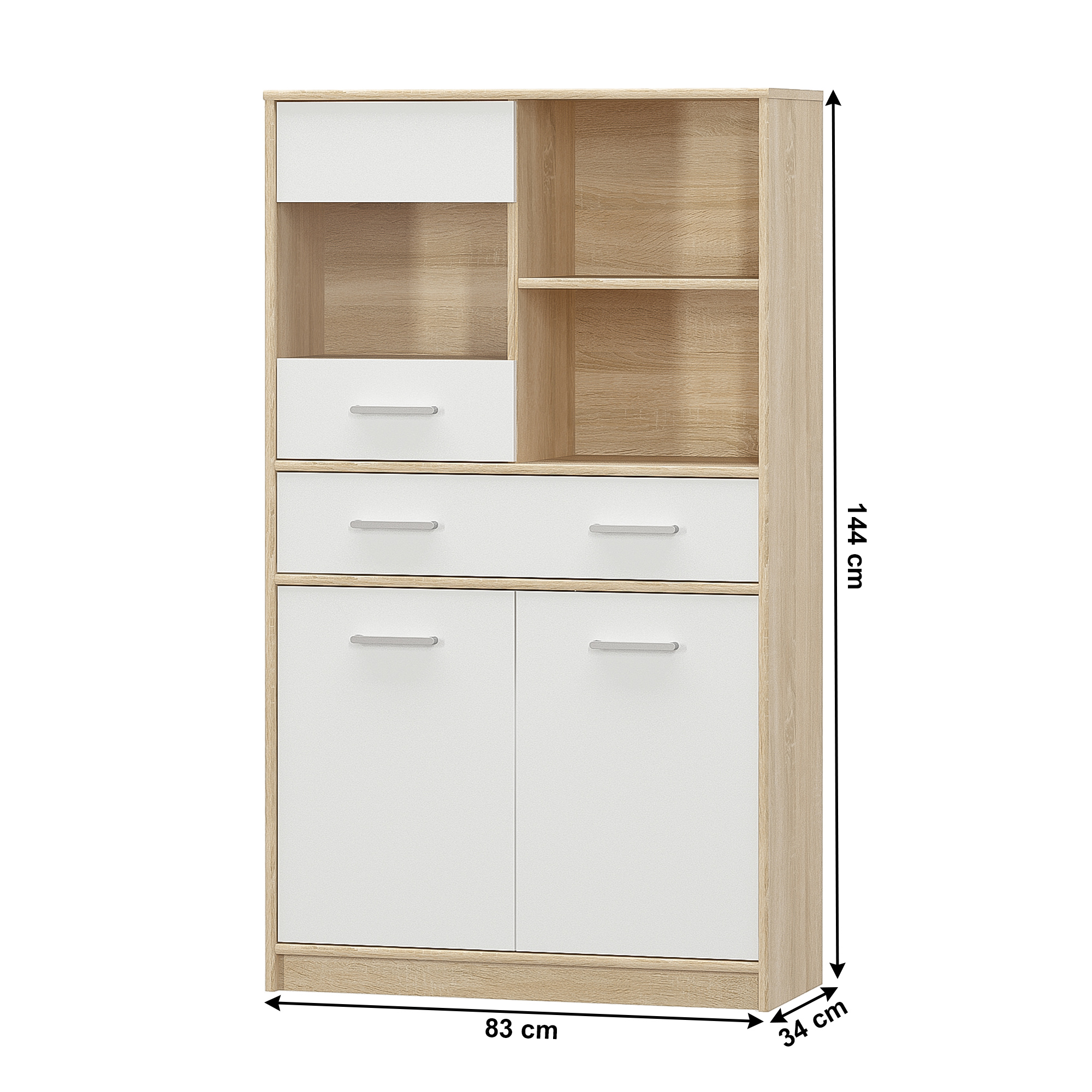 Vitrína 2D1W1S/80, bílá/dub sonoma, TEYO
