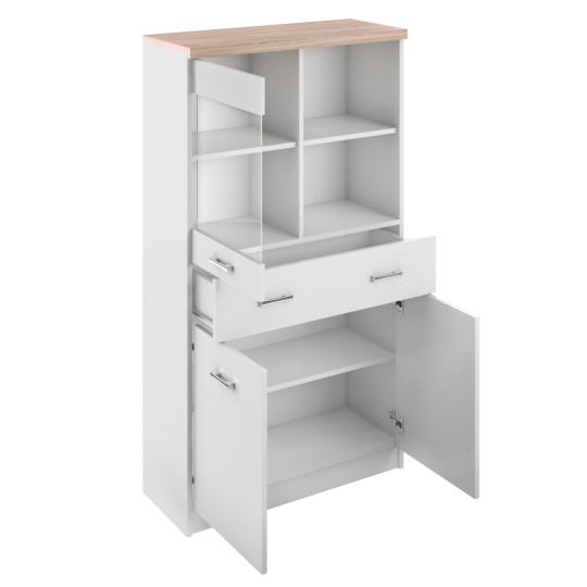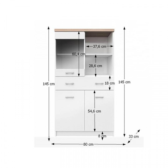 Vitrína 2D1W1S / 80, bílá / dub sonoma, TOPTY TYP 02