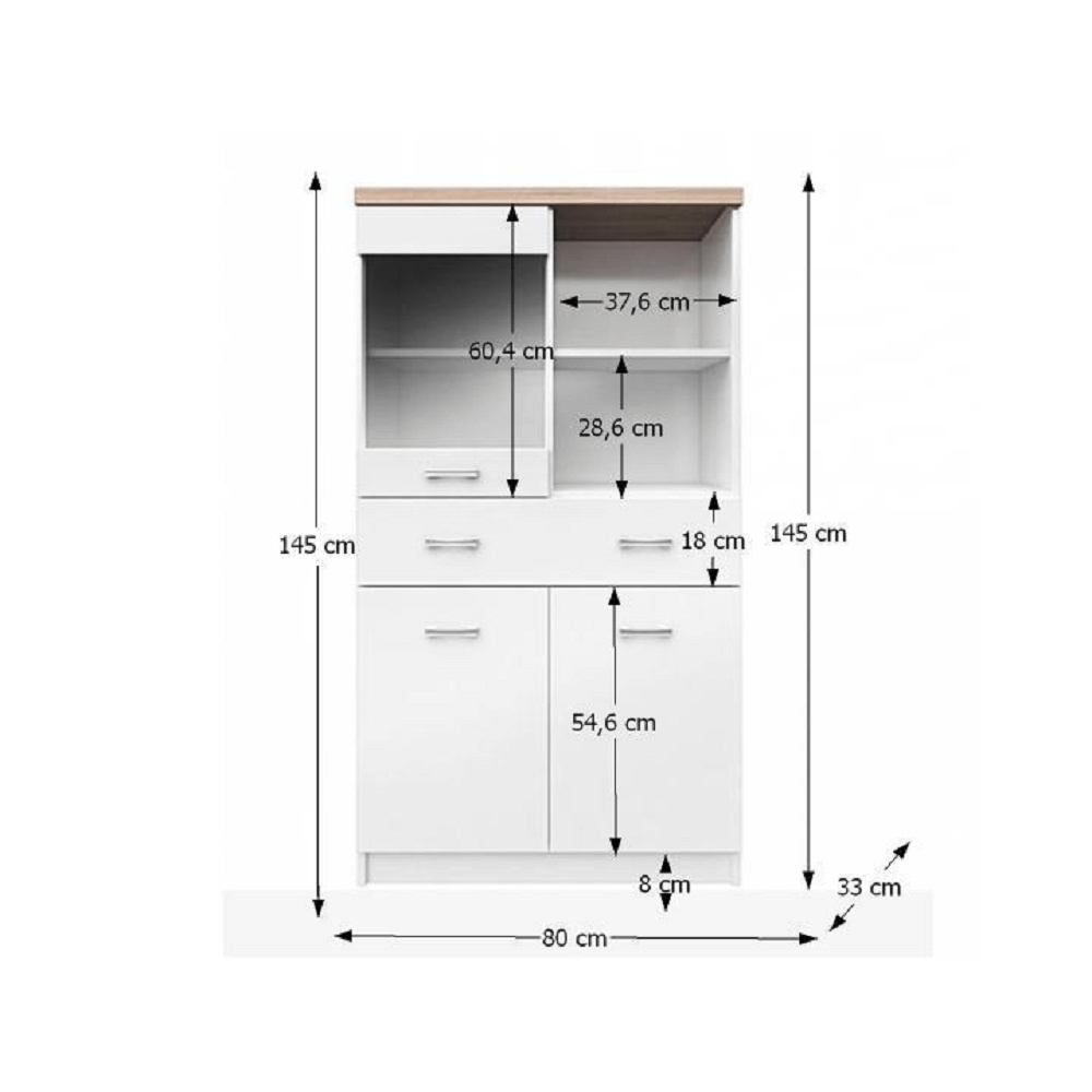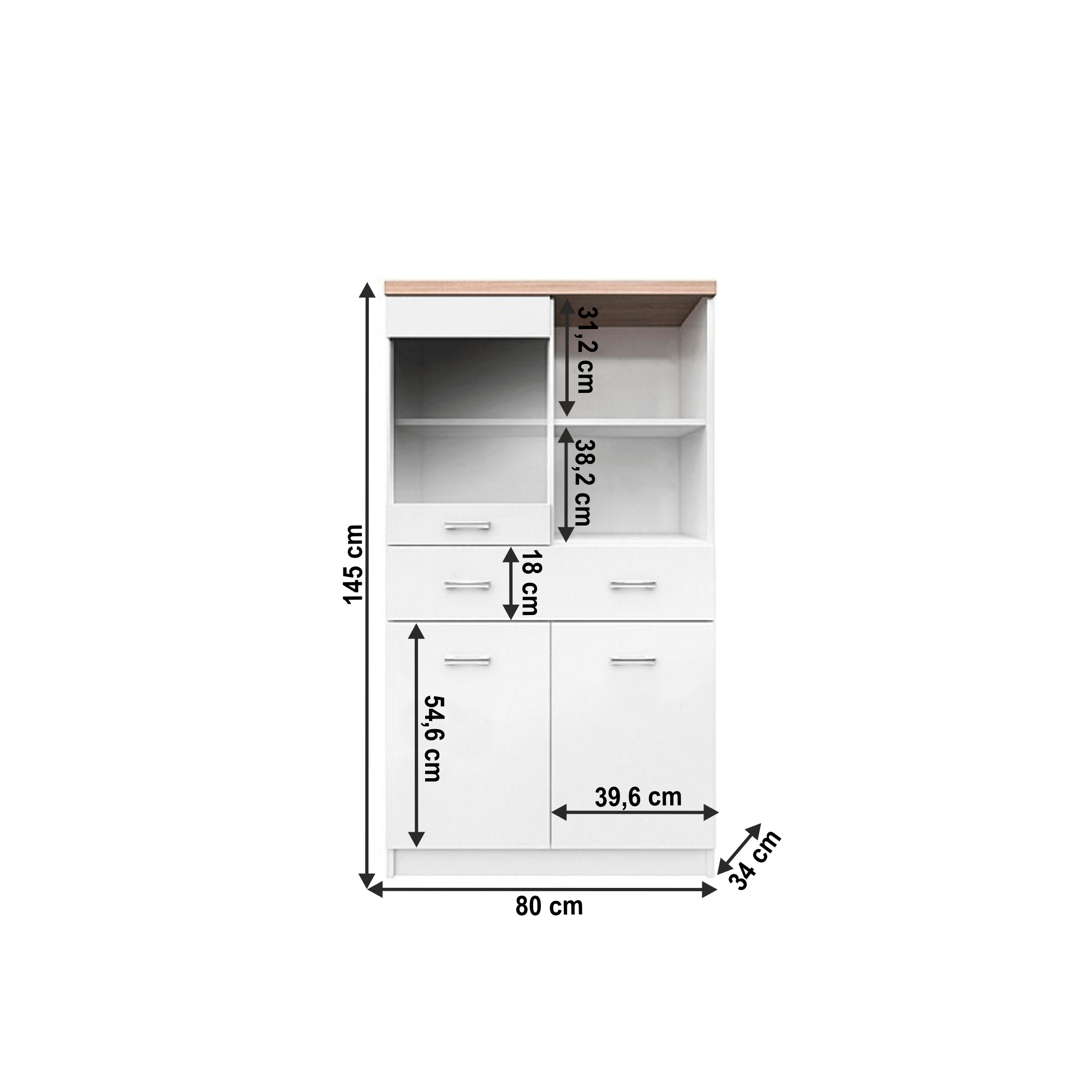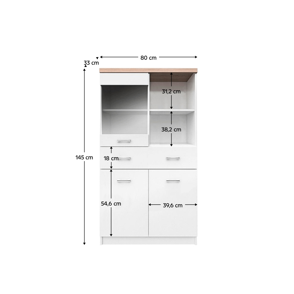 Vitrína 2D1W1S / 80, bílá / dub sonoma, TOPTY TYP 02