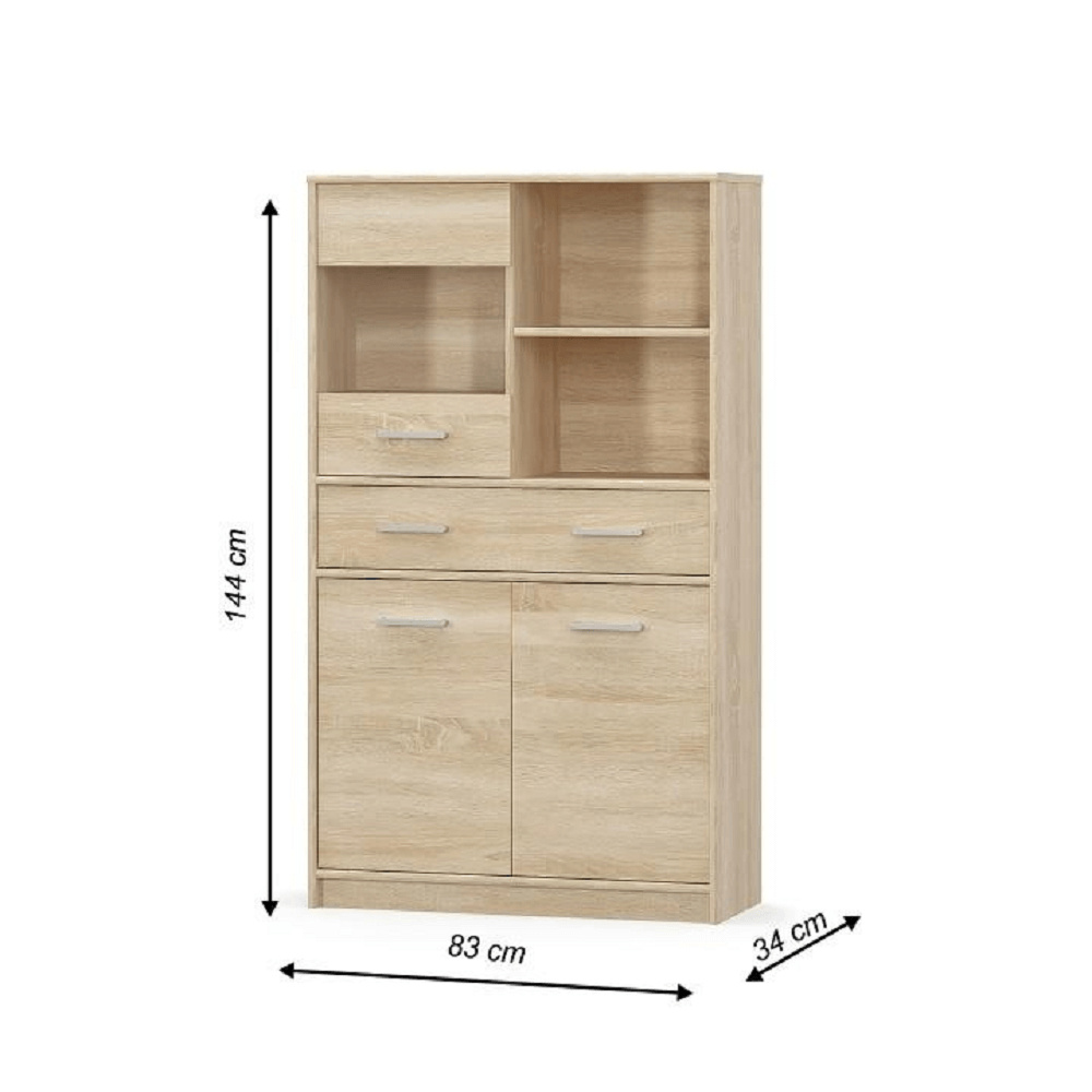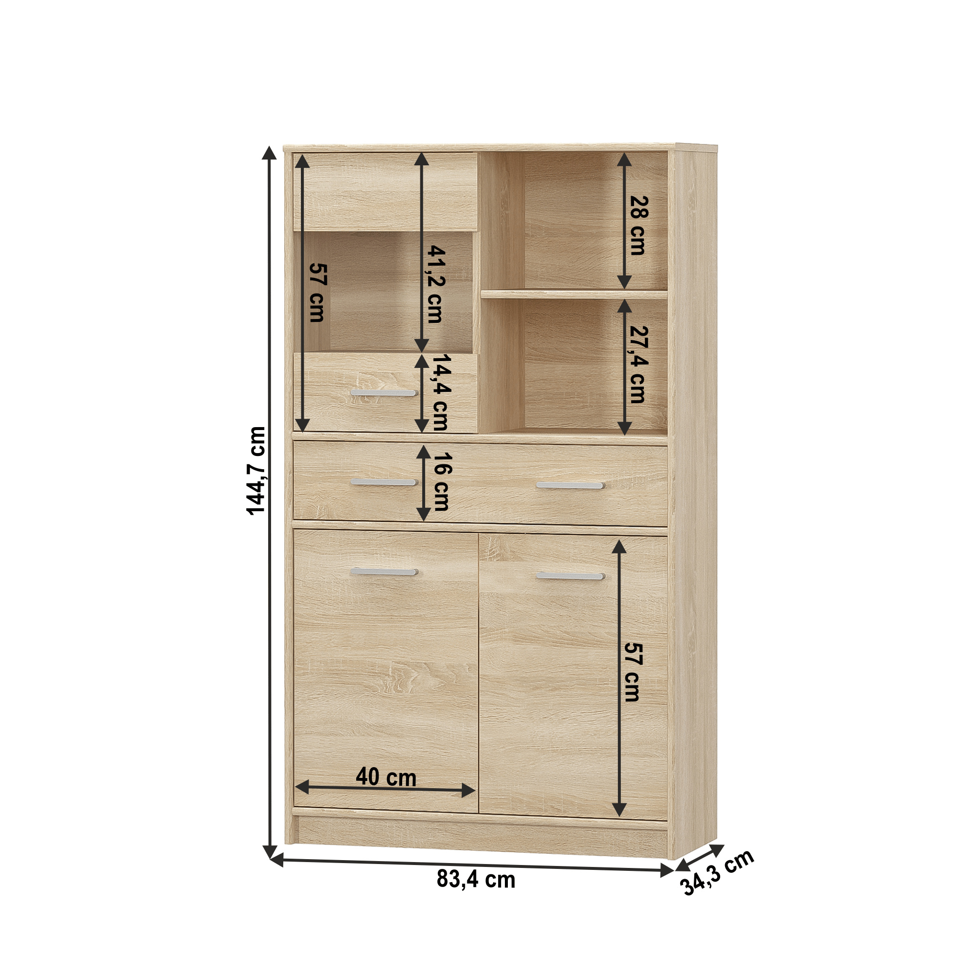 Vitrína 2D1W1S TEYO Materiál: DTD laminovaná Barva: dub sonoma Rozměry (ŠxHxV): 83,4x34,3x144,7 cm Tloušťka materiálu: 16 mm Dodávané v demontu.
