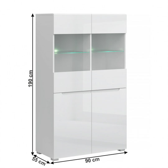 Materiál korpus: DTD laminovaná Barva: bílá Materiál dvířka: MDF Barva: bílý extra vysoký lesk HG Rozměry (ŠxHxV): 90x42x148,5 cm Tloušťka materiálu korpus: 16 cm Tloušťka materiálu dvířka: 18 cm Dodávané bez LED osvětlení moderní styl Dodávané v demontu