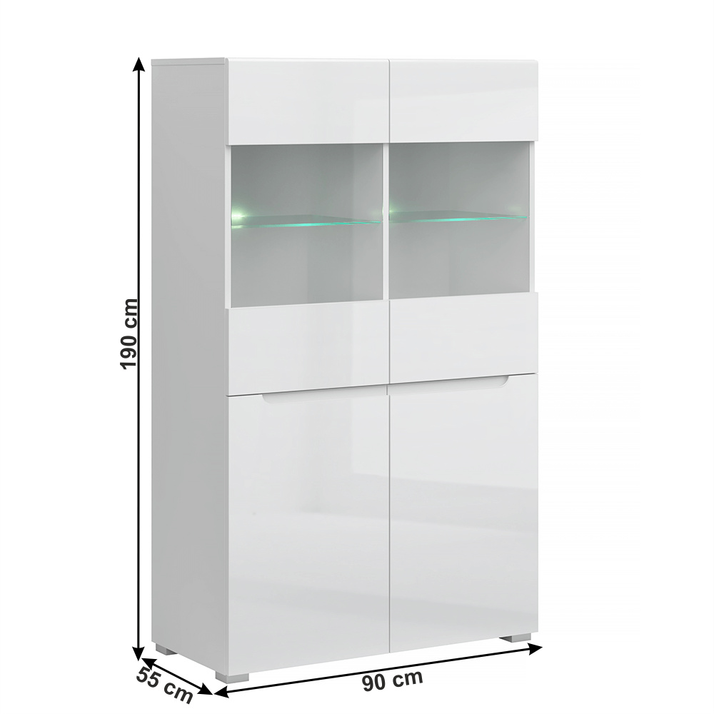 Vitrína 2D2W, bílá/bílý extra vysoký lesk HG, JOLK