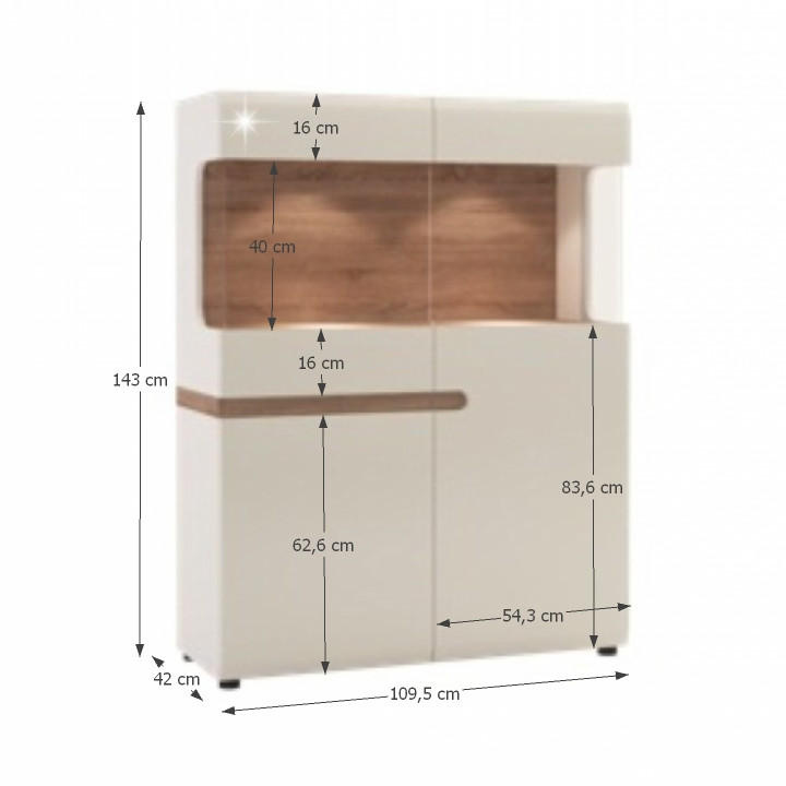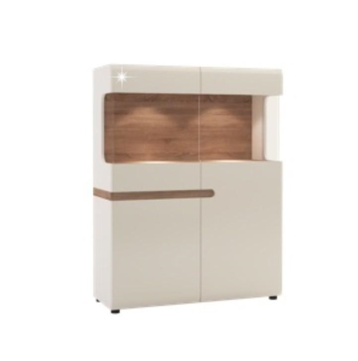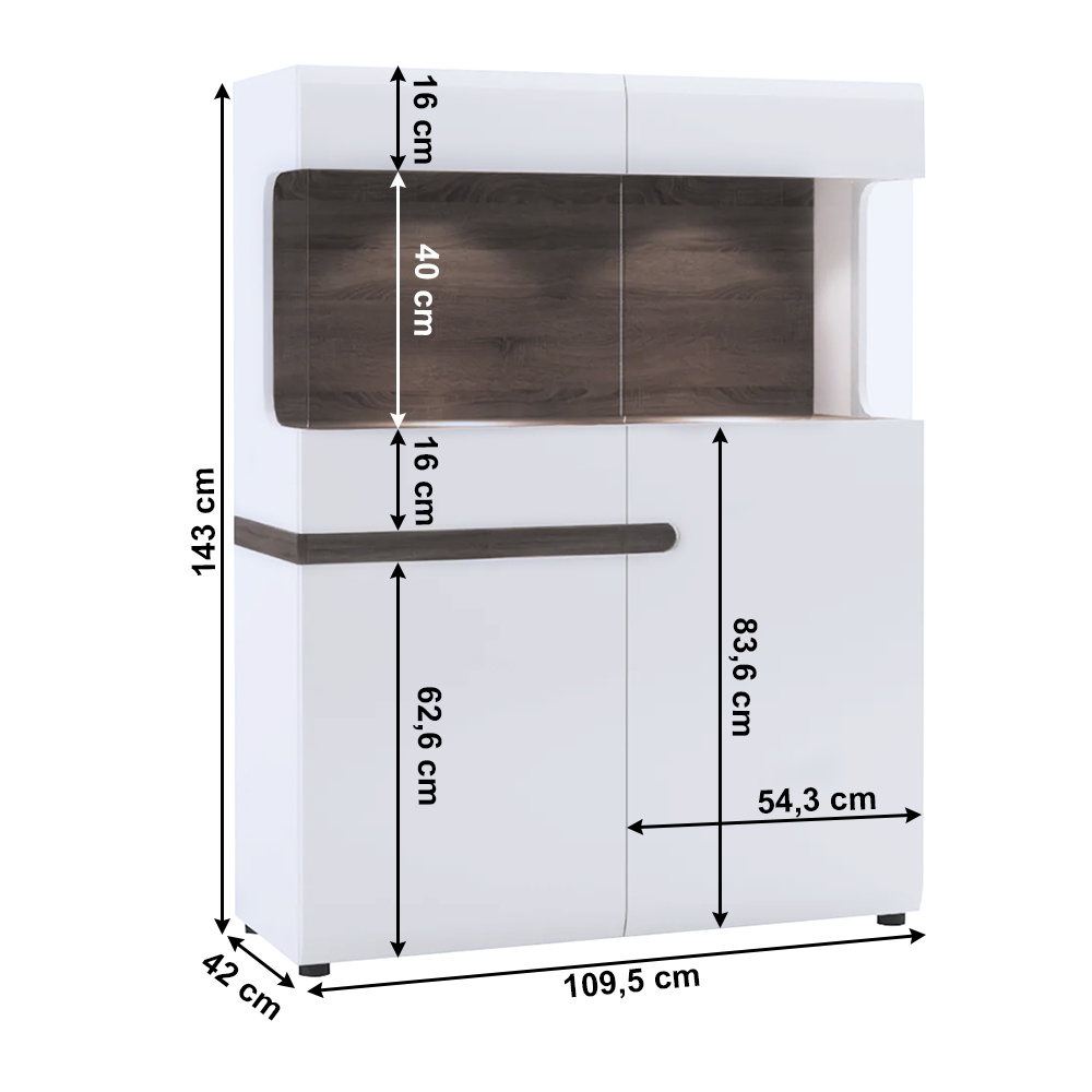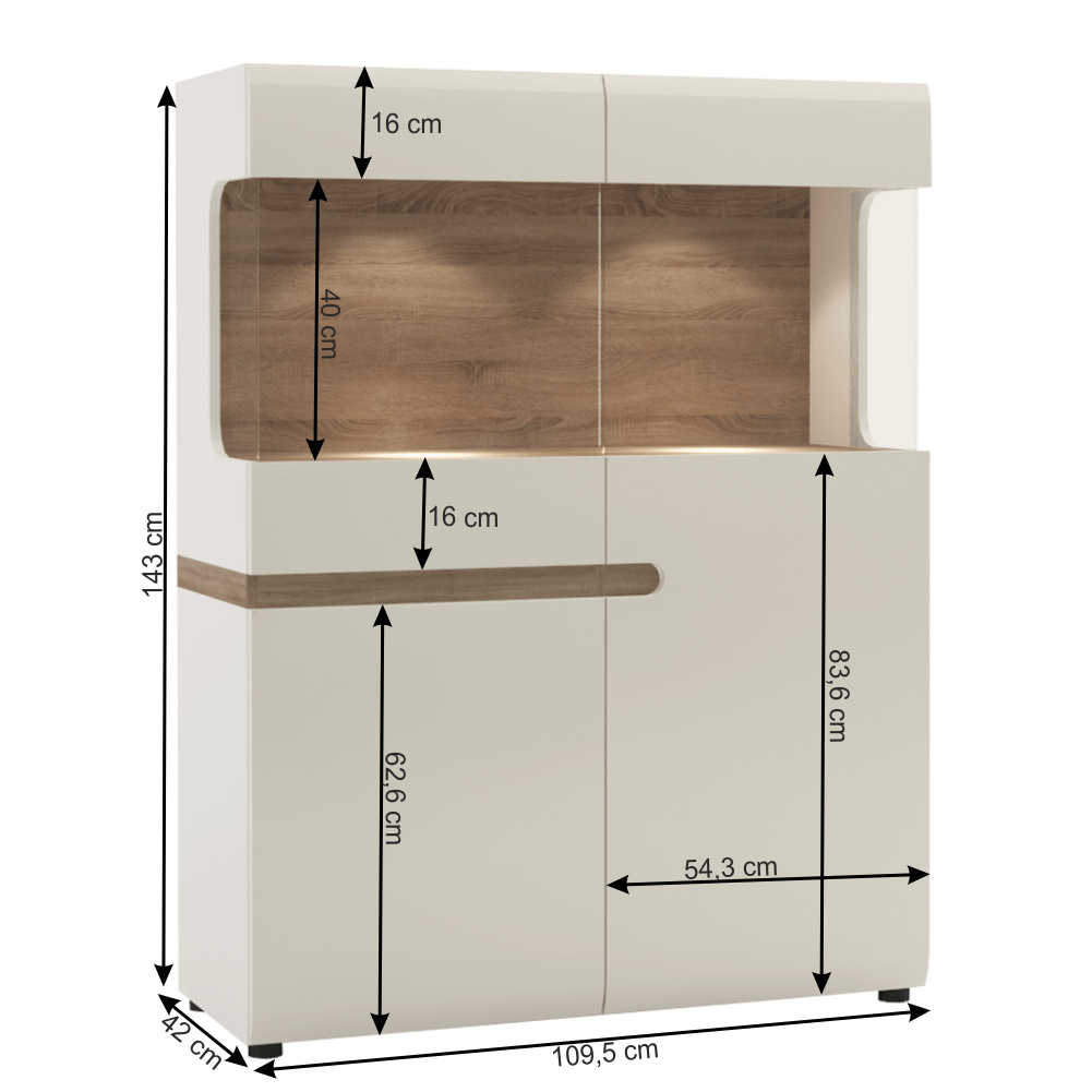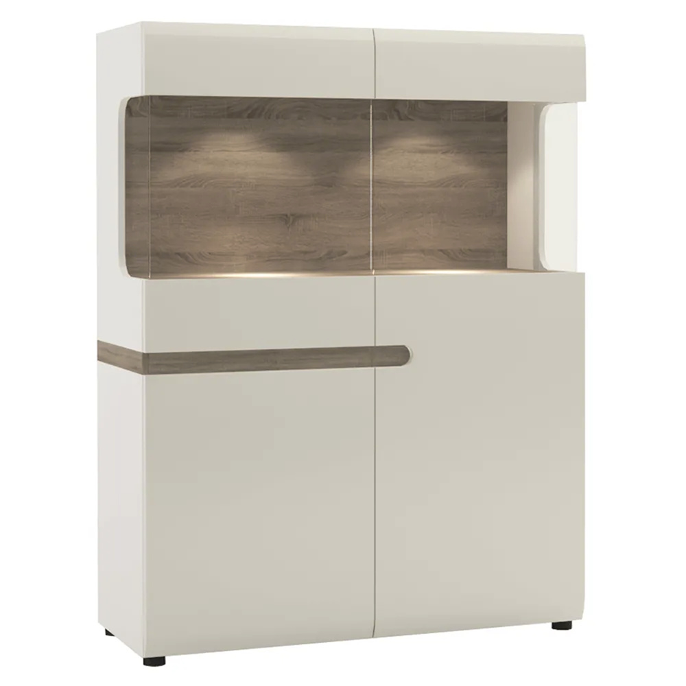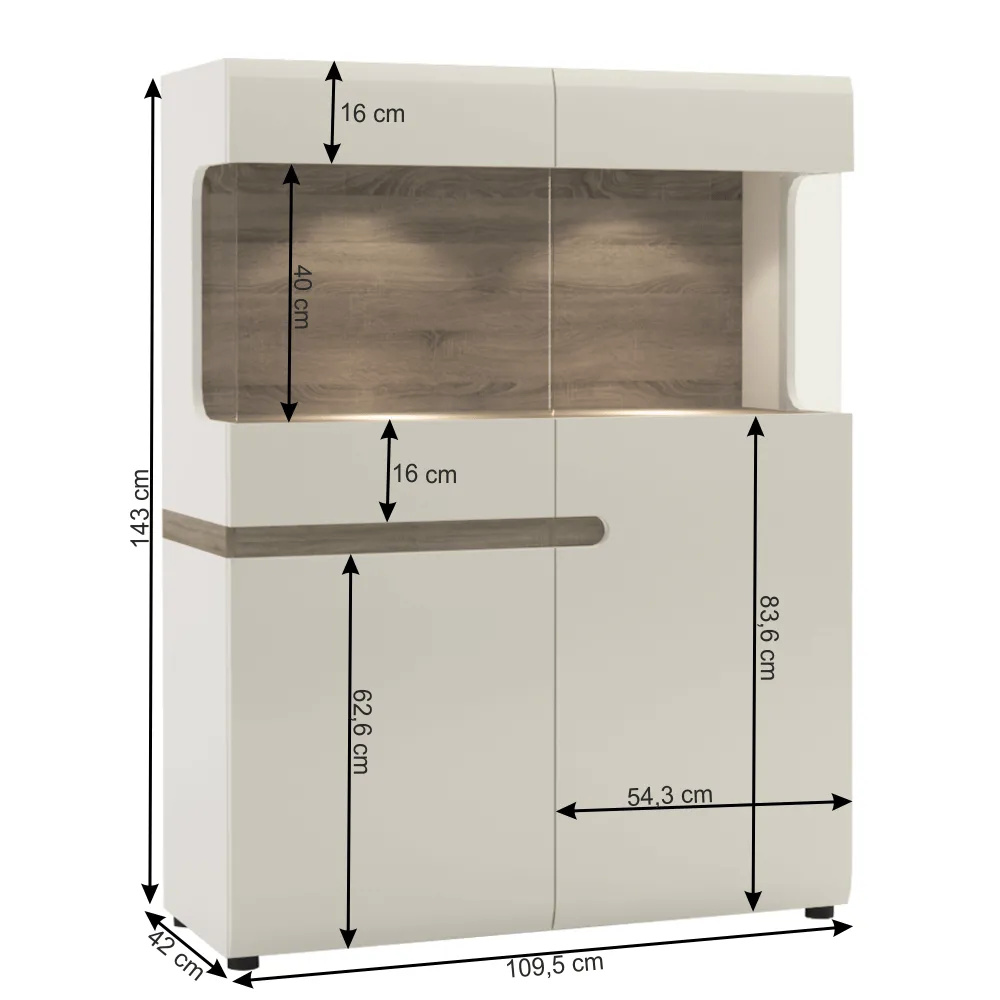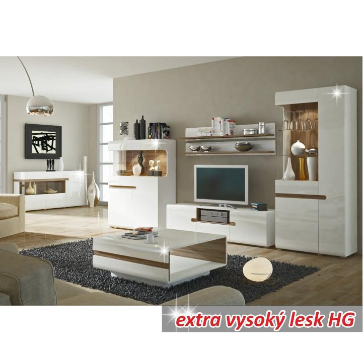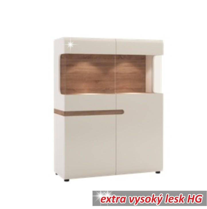 Vitrína, bílá extra vysoký lesk HG / dub sonoma tmavý, LYNATET TYP 33