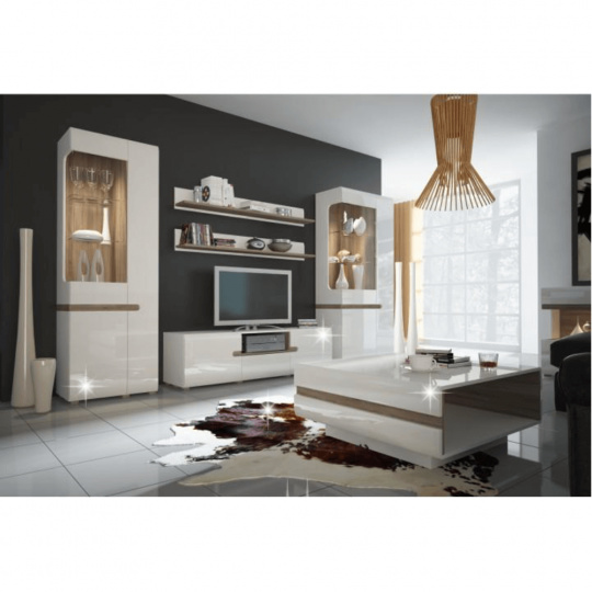 Vitrína, bílá extra vysoký lesk HG / dub sonoma tmavý, levá, LYNATET TYP 01