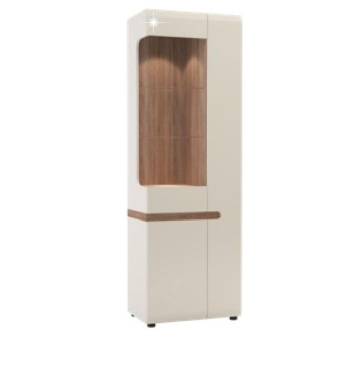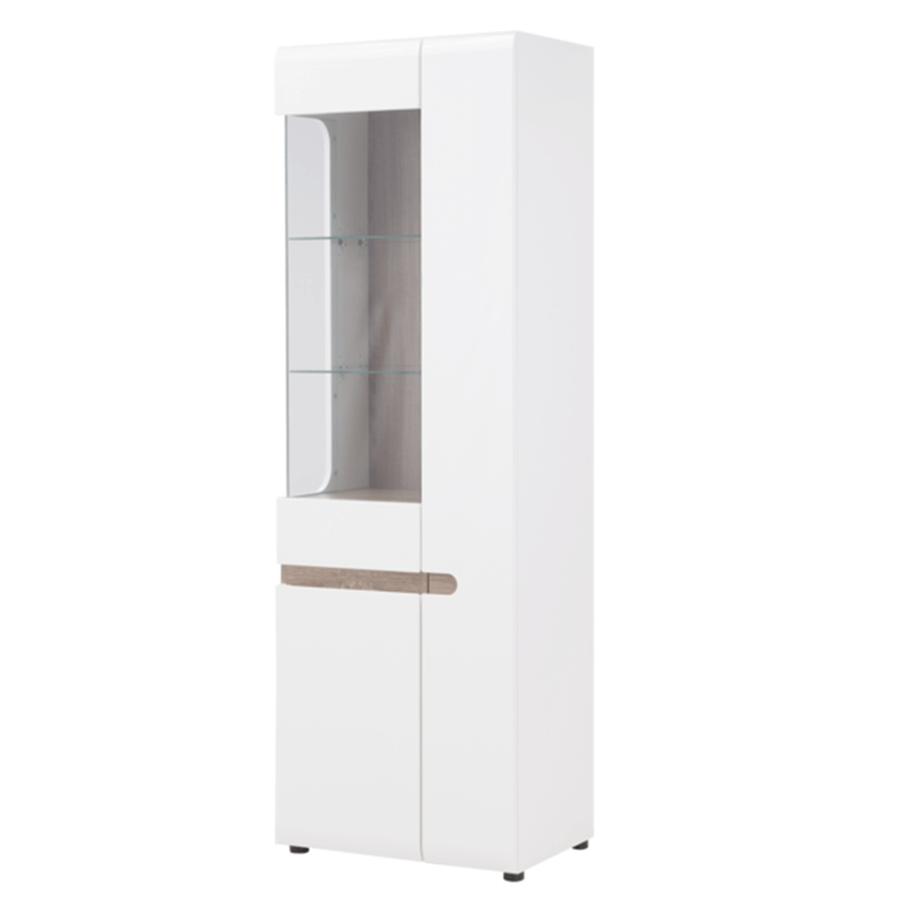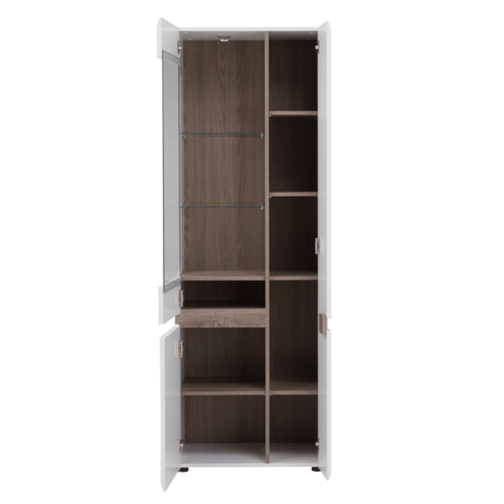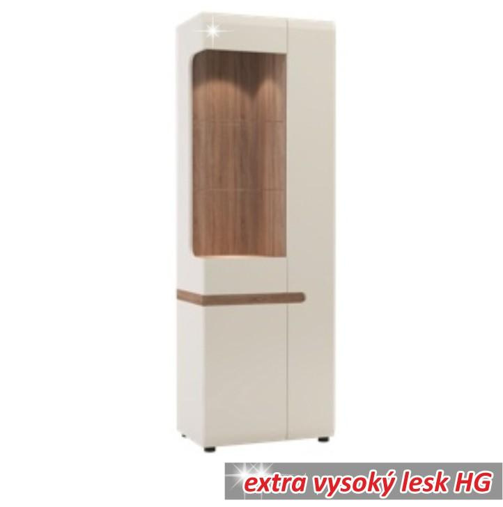 Vitrína, bílá extra vysoký lesk HG / dub sonoma tmavý, levá, LYNATET TYP 01