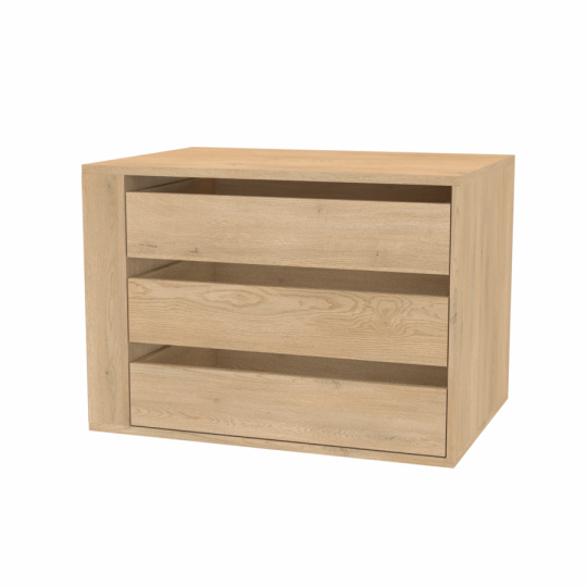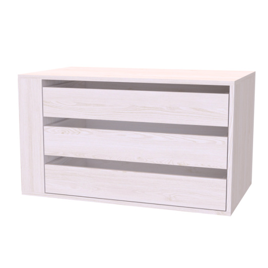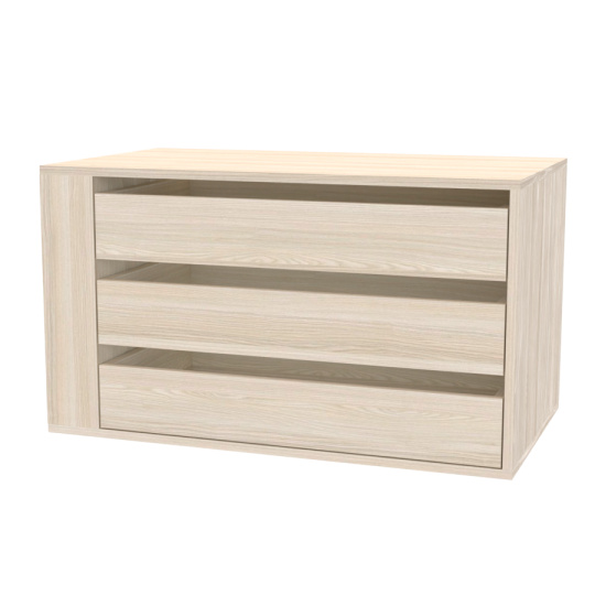 Bezúchytový kontejner, jenž plně nahrazuje zásuvky. Elegantní a moderní provedení, které nenarušuje čisté linie výrobků řady FLEXI. Bezúchytový kontejner do skříní FLEXI šířky 200 cm i 300 cm je vyroben z lamina o síle 18 mm. Výběr z několika akčních dekorů. Kvalitní kování a spojovací materiál je bez použití plastových součástek, vyjma ochranných krytek. Zásuvky s 3D skrytými plnovýsuvy, snadné nastavení ve 3 směrech tak, aby zásuvka perfektně zapadla na místo a snadno vyjížděla. S tlumením s dotahem. Efektní a praktické ABS hrany.