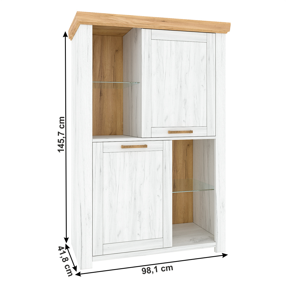 Vitrína C, dub craft zlatý / dub craft bílý, SUDBURY
