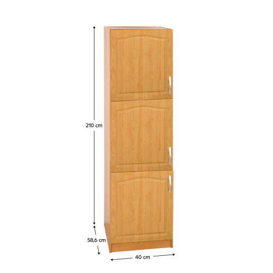 Materiál: DTD laminovaná / MDF foliovaná Barva: Olše Rozměry (ŠxHxV): 40x58,6x210 cm Tloušťka materiálu: 16 mm vysoká třídveřová Dodávané v demontu cena spodních skříněk je bez pracovní desky Možnost dokoupení ruzných sektorových skríněk,koruny a univerzálního L/P dřezu. Cena za 1 bm pracovní desky ke LORA MDF klasik olše je 1.450 Kč. Ceny spodních skřínek jsou bez pracovní desky. Cena za 1 bm koruny je 590 Kč a koruny na W60/60 je 590 Kč Požadovaný rozměr ozdobné lišty napište do poznámky v objednávce.