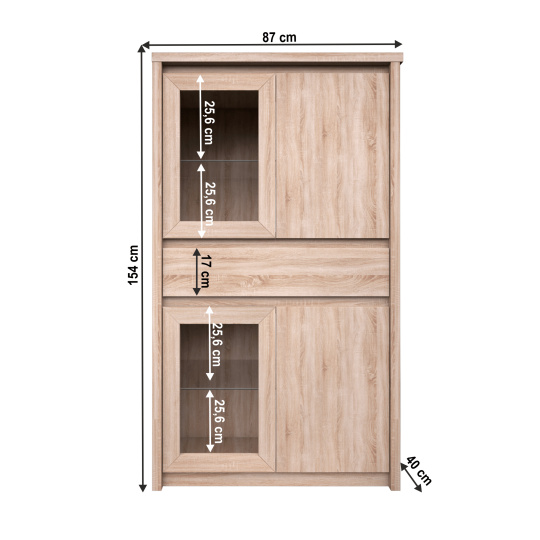Vitrína se šuplíkem 2D2W1S, dub sonoma, NORTY TYP 3
