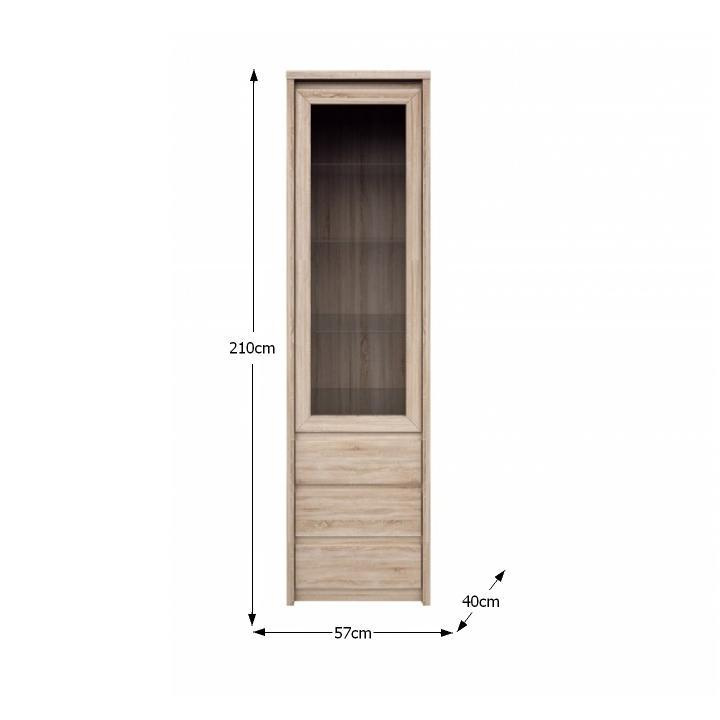 Vitrína se šuplíkem 2D2W1S, dub sonoma, NORTY TYP 3
