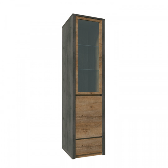 Vitrína, dub lefkas tmavý/smooth šedý, MONTANA W1D