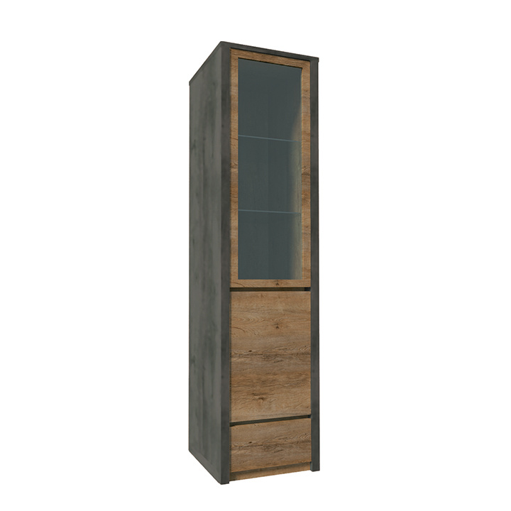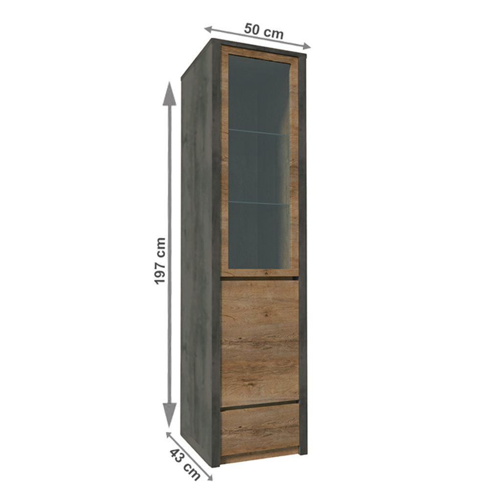 Vitrína, dub lefkas tmavý/smooth šedý, MONTANA W1D