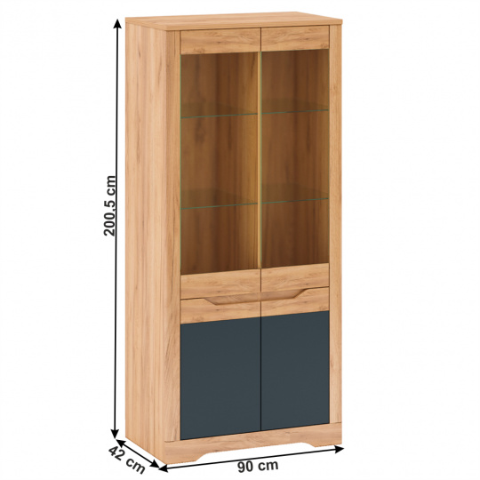 Vitrína H, dub craft zlatý/grafit šedá, FIDEL