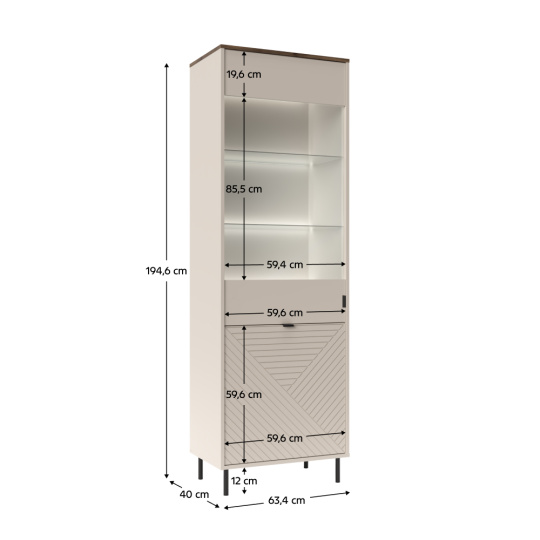 Vitrína, kašmír/dub castello, EYCO 1D1W