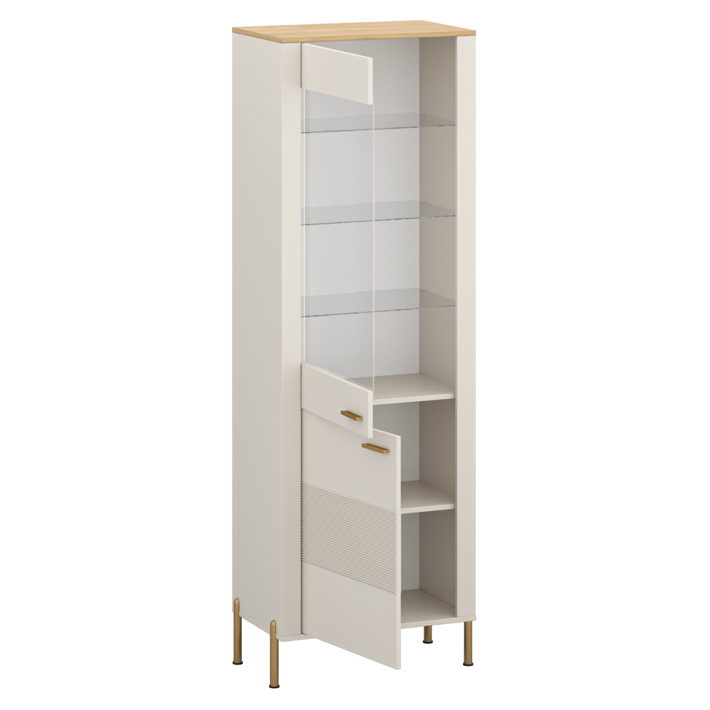 Vitrína, kašmír/dub kamenný, RUNOL 1D1W